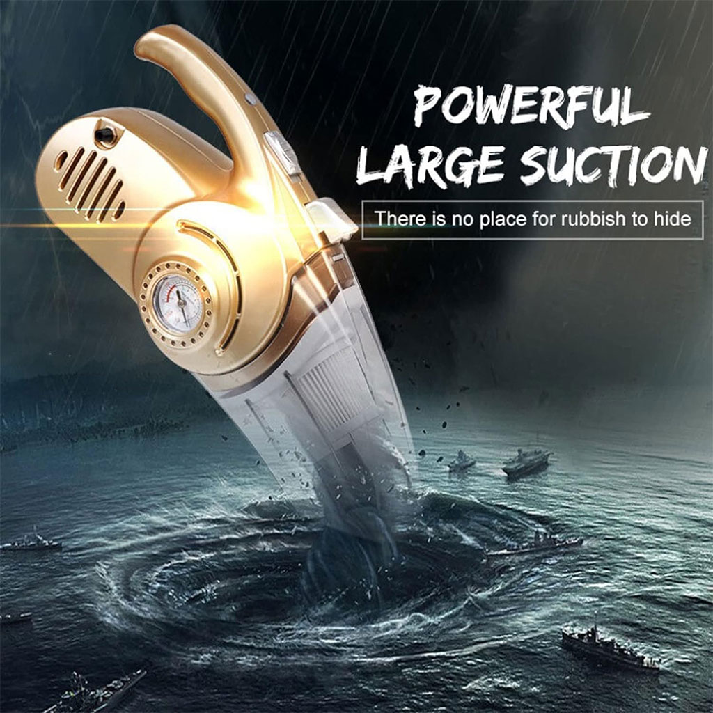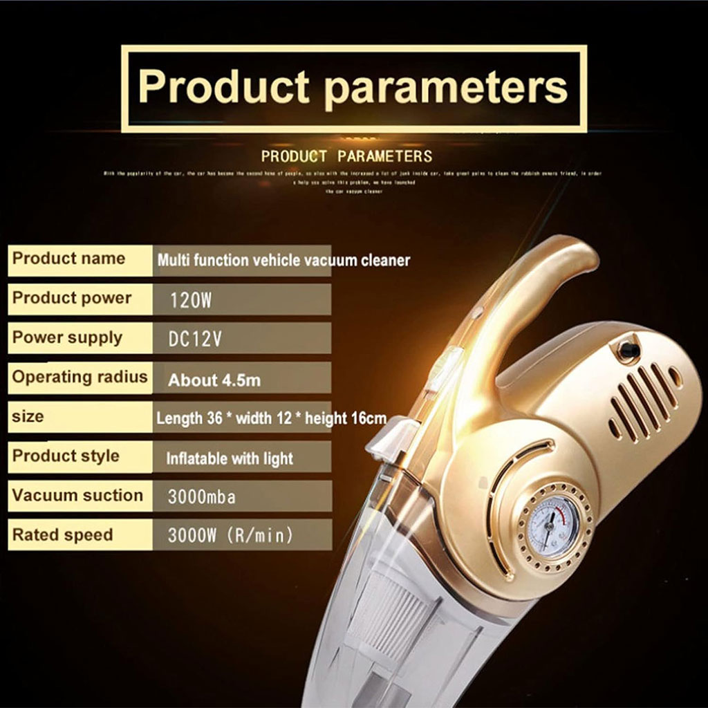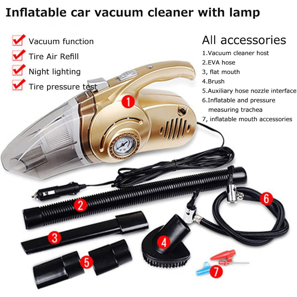 Polyvalence et forte aspiration : aspirateur de voiture 12 V 100 W, aspiration super puissante, supporte une utilisation sèche et humide, peut facilement ramasser la poussière, les miettes, les poils d’animaux, les liquides et bien plus encore.Équipé de 3 types d’accessoires différents pour bien nettoyer toutes les zones de votre maison ou de votre voiture.Design innovant : avec un gonfleur de pneu numérique intelligent, assurez-vous que la pression des pneus est précise et gonflez les pneus à tout moment et n’importe où en 5 minutes.Lumière LED intégrée : l’aspirateur à main dispose d’une lumière LED intégrée, une grande aide pour le nettoyage des endroits sombres et le nettoyage de nuit. Avec cela, vous pouvez nettoyer les endroits difficiles à atteindre sans problème.Fonctionnement plus silencieux : produit moins de 80 dB de son tout en conservant sa puissante capacité d’aspiration basée sur les principes d’amortissement mécanique, ce qui vous donne une expérience de nettoyage confortable, sans déranger vos enfants et effrayer vos animaux de compagnie.