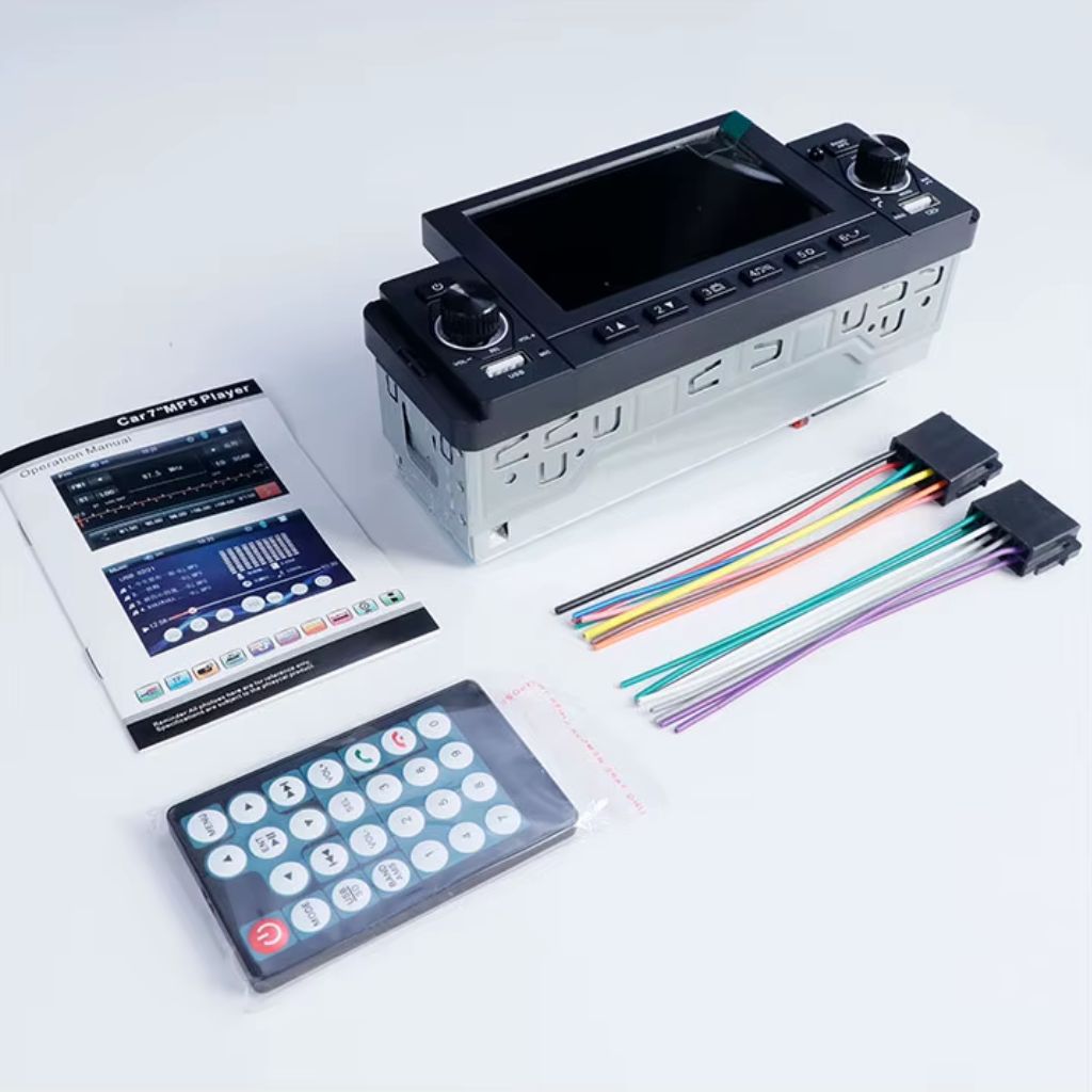 Bluetooth Intégré : Connectivité sans fil pour passer des appels en mode mains libres et diffuser votre musique préférée.Écran MP5 Haute Résolution : Écran tactile pour une interface utilisateur fluide et une lecture vidéo de qualité.Fonction MirrorLink : Permet de refléter l’écran de votre smartphone pour une navigation facile et une meilleure connectivité.Ports USB et AUX : Compatible avec les périphériques USB pour lire de la musique et des vidéos directement depuis une clé USB.Tuner FM : Écoutez vos stations de radio préférées avec une qualité sonore optimale.