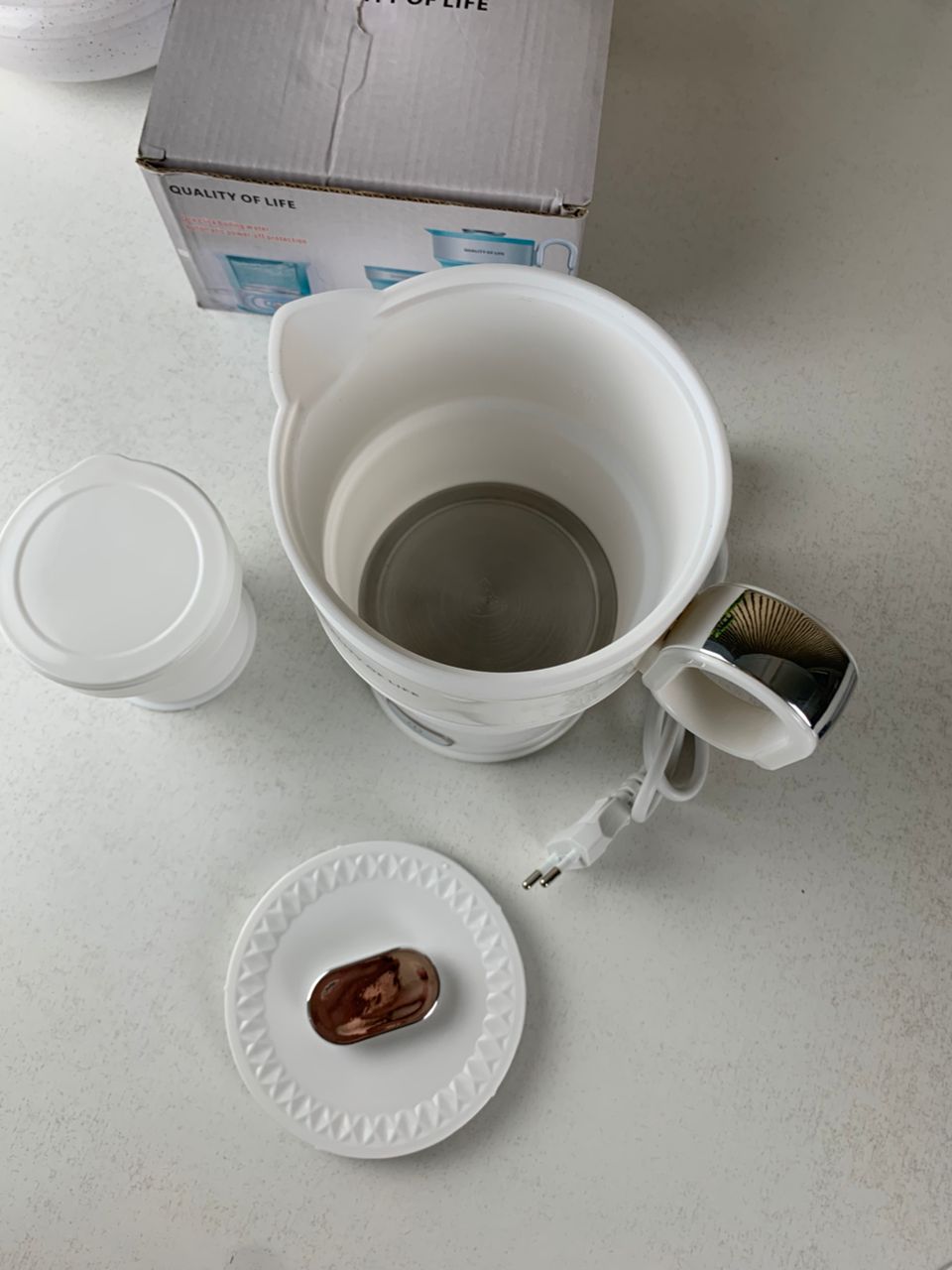 📦 تصميم قابل للطيبلمسة بسيطة يمكنك طي الغلاية لتصبح بحجم راحة اليد. مثالية للسفر، الرحلات، العمل، أو حتى للاستخدام اليومي. توفر لك ماءً مغليًا ونظيفًا أينما كنت.