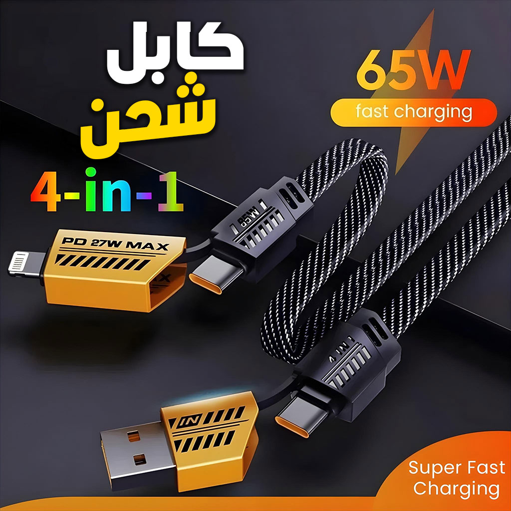 Câble de charge multifonction en nylon tressé durable 4 en 1 à double tête – شاحن سريع ومتين متعدد المنافذ