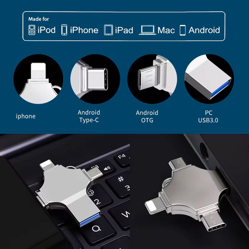 Transfert de données rapide, plusieurs ports.【Grande capacité】 : clé USB de 256Go, capacité fonctionnelle de près de 30 Go, car une partie de la capacité est utilisée pour le format et d'autres fonctions. De petite taille, excellent pour le rangement, léger et résistant.【Plug & Play】: il n'y a pas besoin de placer un logiciel, il suffit de le brancher dans le port de clé USB d'un ordinateur ou d'un autre appareil et de l'utiliser. Les clés USB Olegtronics ont quatre options disponibles, elles sont compatibles avec PC, ordinateurs portables, TV, voitures, audio, etc.【Diverses utilisations】 : excellente exécution dans la sauvegarde automatique des données, la transmission et le transport avec les parents, les amis, les clients et les appareils. Vous pouvez ranger de la musique, des photos, des films, des manuels, des programmes et des documents à un rythme rapide.