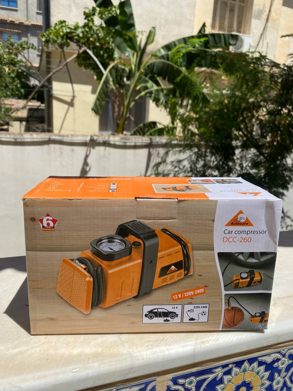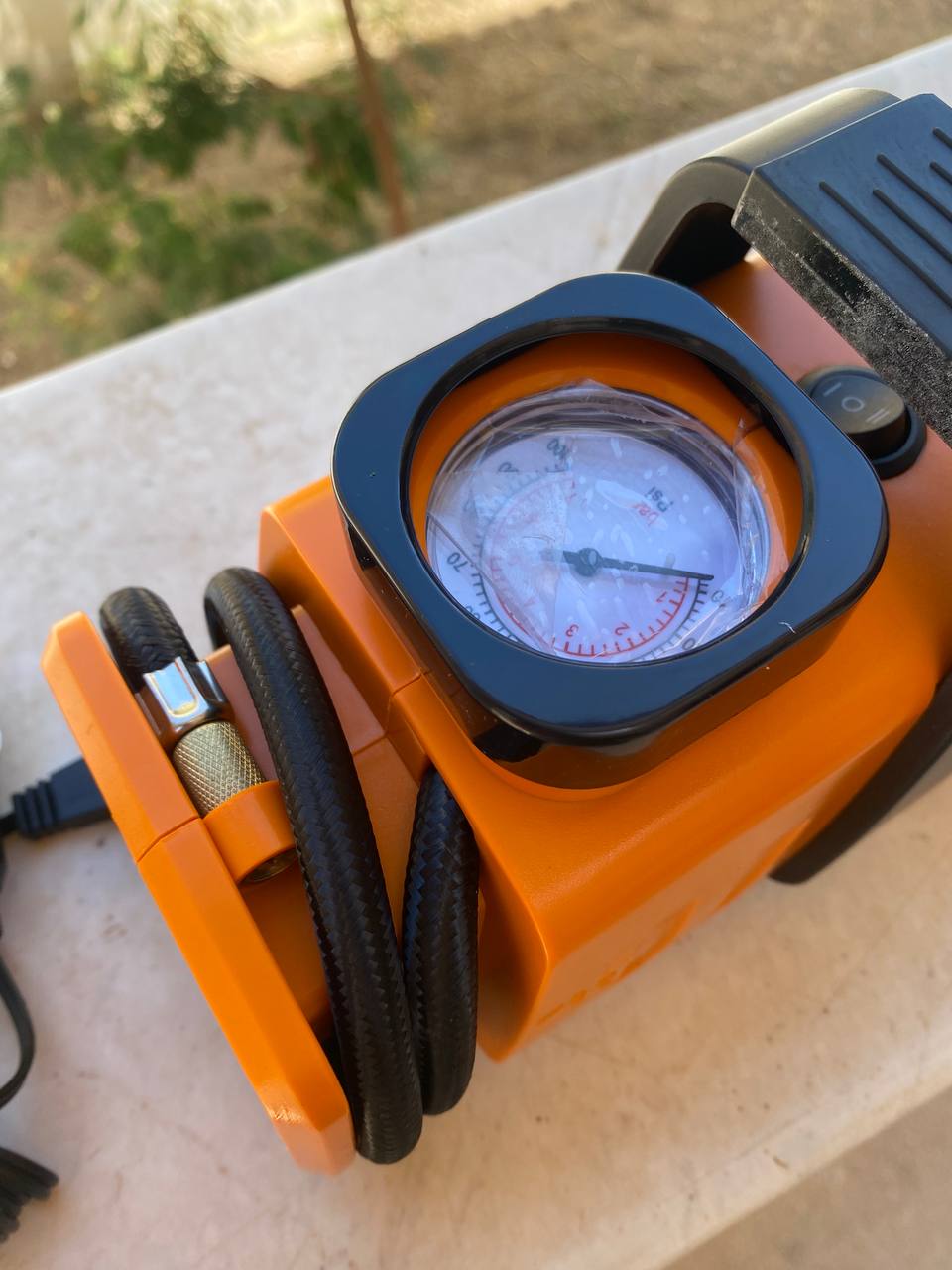 يستخدم لنفخ إطارات السيارات، الكرات، المراتب الهوائية، إطارات الدراجات وغيرها. مزود بمانومتر وقابس لتوصيل ولاعة السيارة 12 فولت ويعمل أيضًا على شبكة 220 فولت.