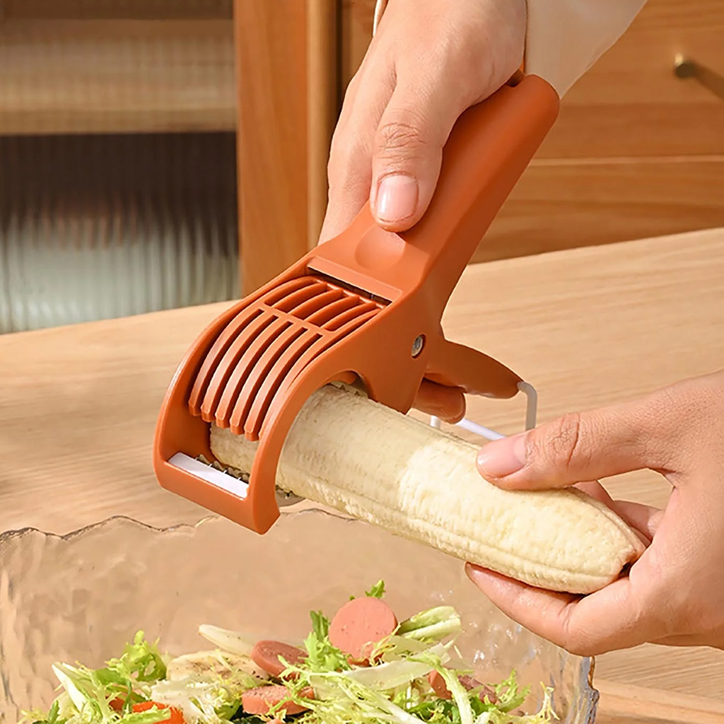 🍌 أداة تقطيع الفواكه المتعددة الاستخدام – سريعة، آمنة وسهلة التنظيفمثالية لتقطيع الموز، الخيار، النقانق، الفراولة وغيرها