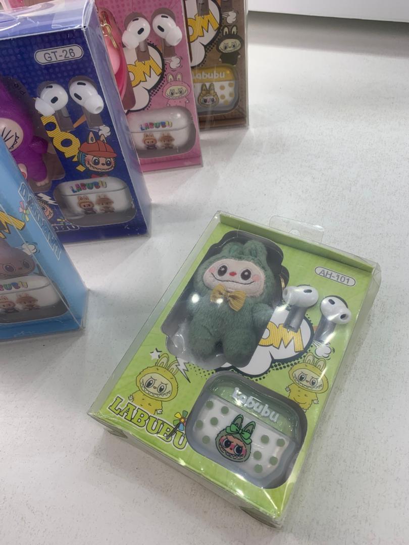 1 paire d’écouteurs Bluetooth1 boîtier de charge décoré1 figurine LABUBU avec porte-clés