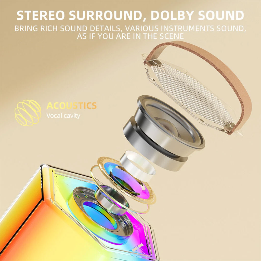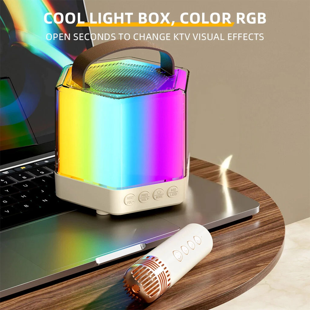 Effets stéréo dignes d’un film : Libérez tout le potentiel de votre voix grâce à la technologie audio avancée de notre machine de karaoké. La puissante bobine et la puce de réduction du bruit DSP fonctionnent en tandem pour un son digne d’un film.Éclairage RVB dynamique : créez une atmosphère vibrante et énergique avec l’éclairage RVB plein de vivacité de notre machine de karaoké qui change en synchronisation avec le rythme de la musique, rendant vos fêtes inoubliables.Clarté audio améliorée : améliorez votre expérience de karaoké avec la puce intelligente de notre machine qui fournit des voix et des instrumentaux riches pour une séance de chant fluide et agréable, garantissant une expérience de chant heureuse à chaque fois.Divertissez-vous n’importe où : profitez d’un son fluide avec une machine à karaoké parfaite pour n’importe quel environnement, légère pour les voyages et équipée d’une batterie longue durée pour un plaisir prolongé.