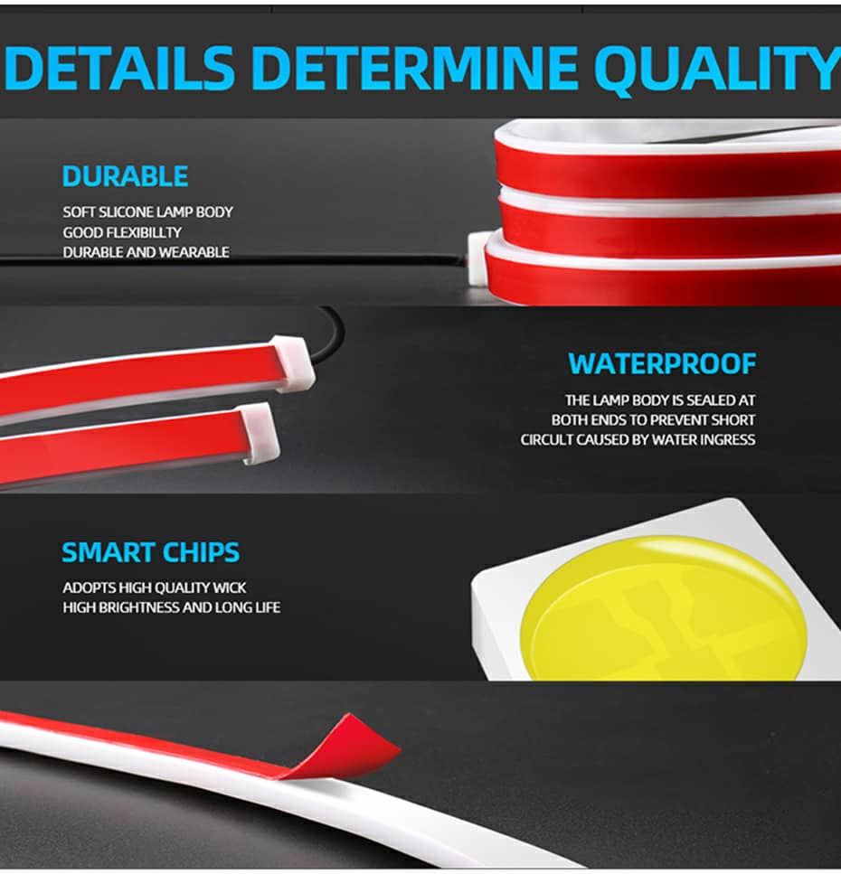Installation facile 5050 perles LED de haute qualité Faible consommation d’énergie Longue durée de vie Lampes de sécurité Anti-Collision arrière clignotantes stroboscopiques Anti-Collision, alarme clignotante Étanche, anti-poussière Câblage: le fil rouge se connecte au positif, le fil noir se connecte au négatif.