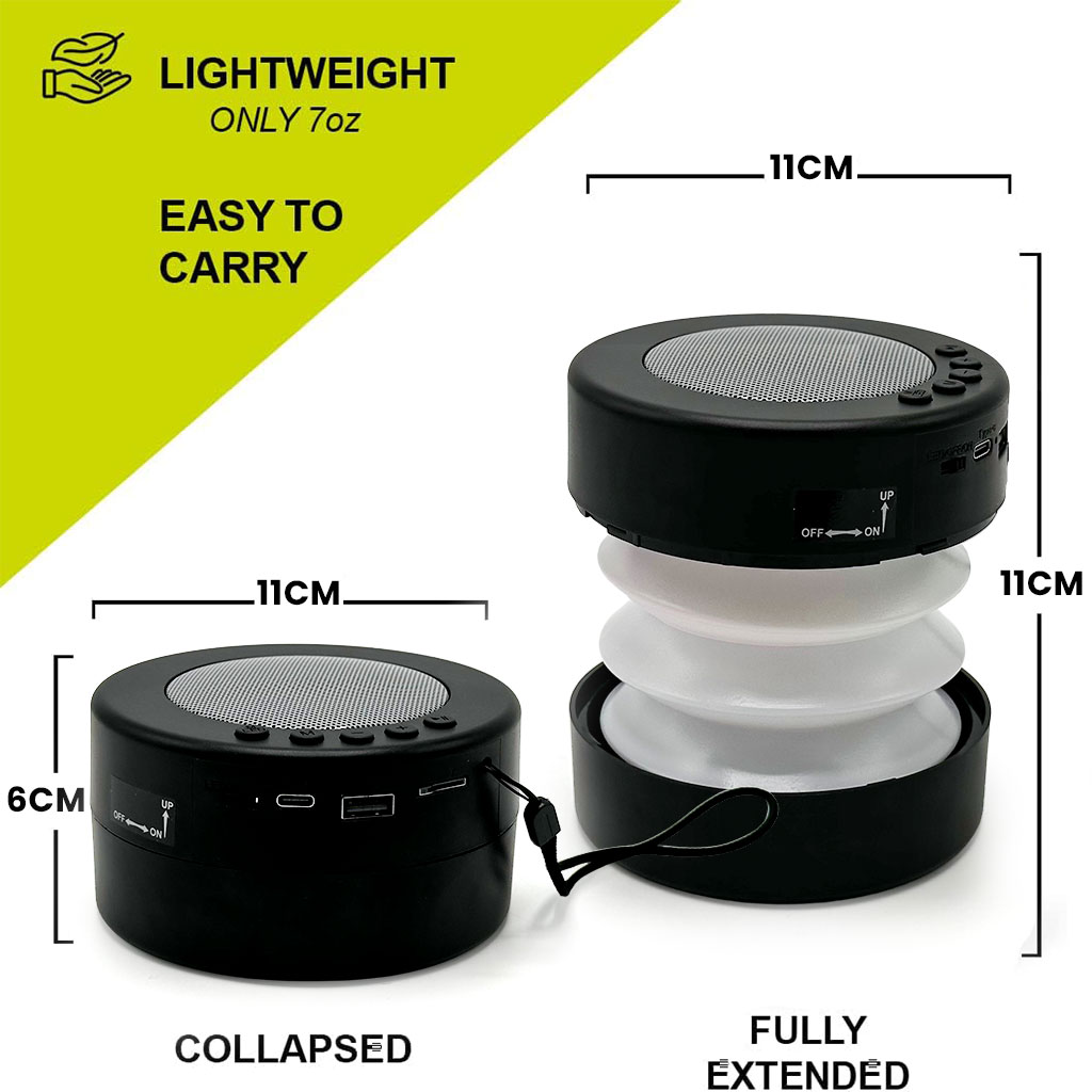 Connexion BluetoothFonction lampe LEDDesign pliableAutonomie rechargeablePorts USB / TF / AUX