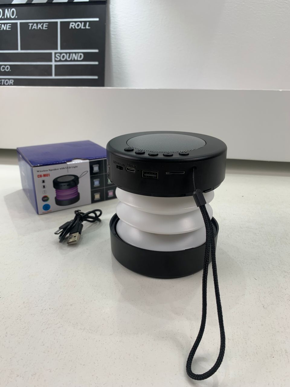 Profitez de votre musique partout avec cette mini enceinte Bluetooth au design pliable et lumineux ! Compacte et légère, elle se transforme en lampe d’ambiance grâce à son éclairage LED multicolore. Compatible avec tous les appareils Bluetooth, elle offre une bonne qualité sonore, un port USB et une entrée carte TF. Idéale pour le camping, les soirées ou simplement pour écouter votre musique préférée à la maison.