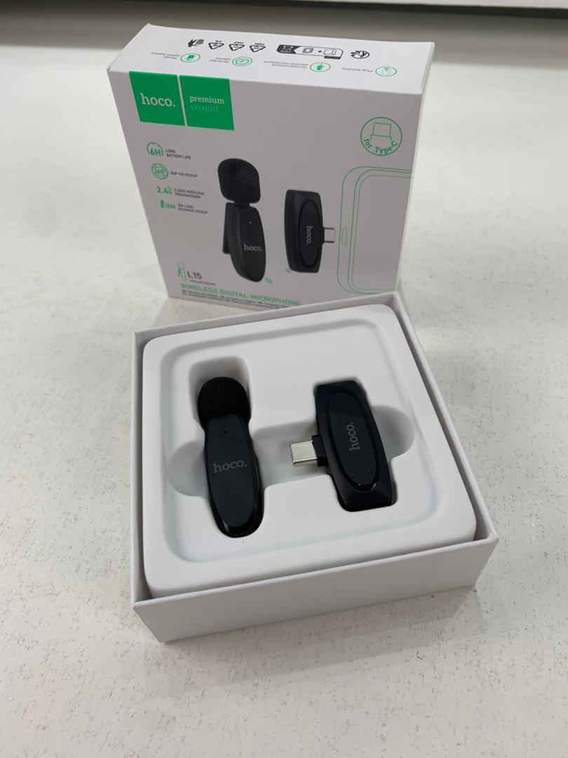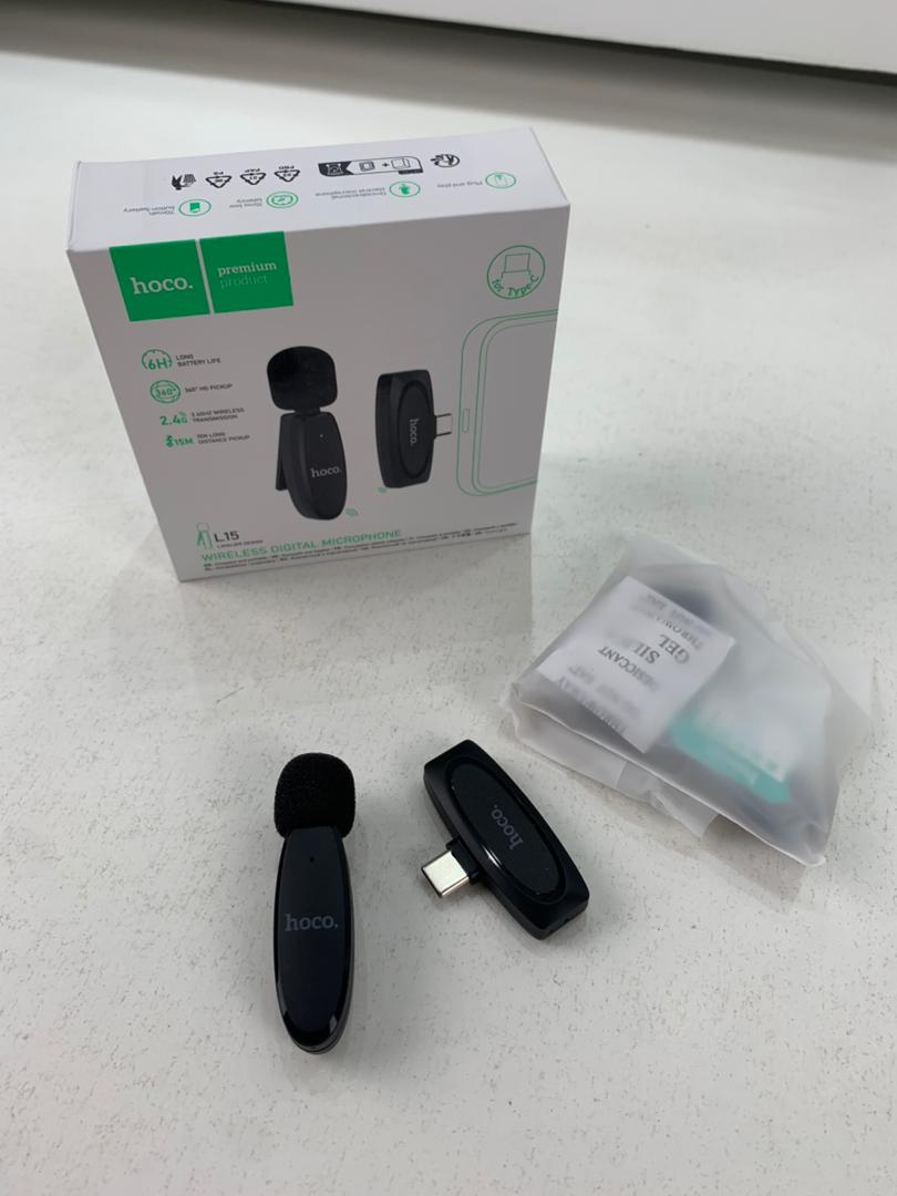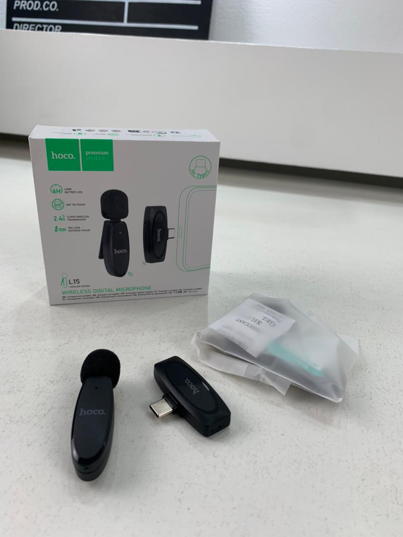 L15 Type-C Microphone numérique cravate sans fil- Hoco . Ce microphone est petit, léger et facile à utiliser, ce qui le rend parfait pour les vloggers, les YouTubers, les podcasteurs et toute autre personne souhaitant capturer un son clair et net.