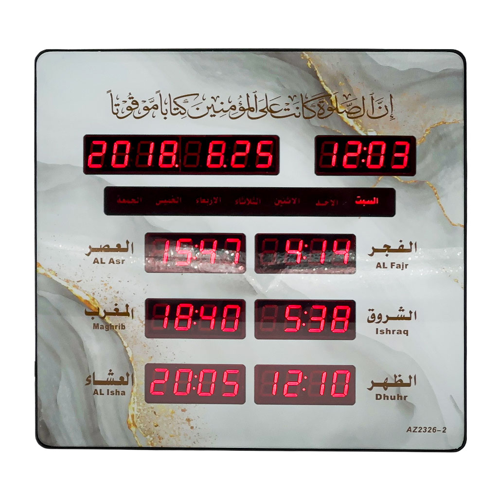 Découvrez l'horloge numérique islamique AZ2326-1, conçue pour les musulmans souhaitant suivre les horaires de prière avec précision. Son design fin et son éclairage LED offrent une lecture claire et élégante.