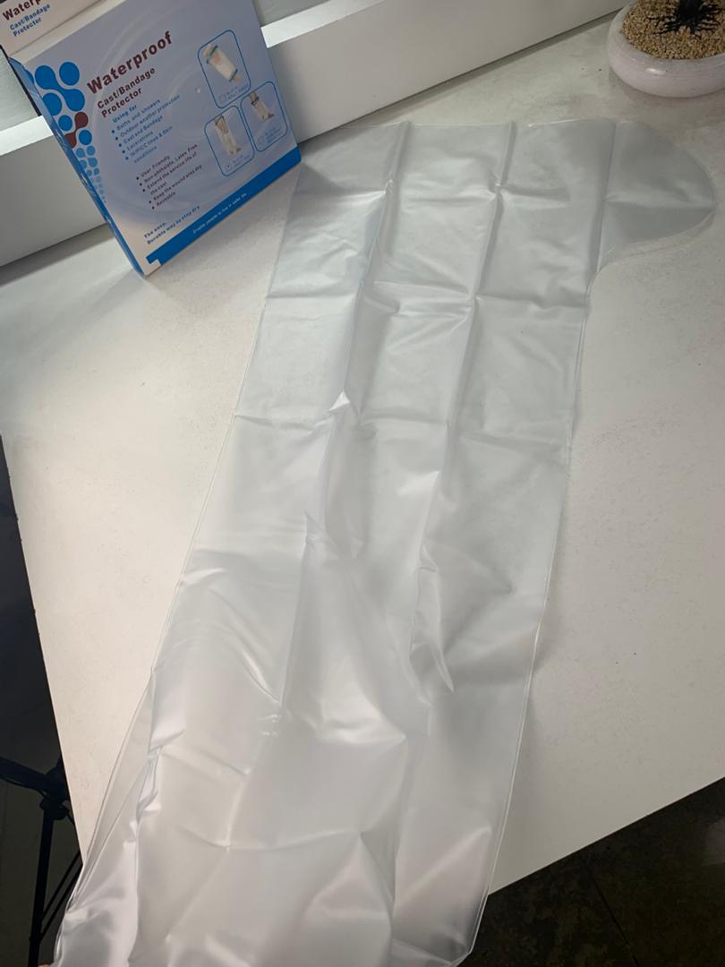 تم تصميم غطاء الجبيرة خصيصاً للأشخاص الذين يعانون من الجبائر، الضمادات، الطفح الجلدي، الجروح، الحروق، الخدوش، الغرز، أو الأحذية الطبية. يحمي أيضاً من تسرب الماء على الدعامات الجراحية للركبة، أنابيب PICC/IV وغيرها من المناطق المصابة.