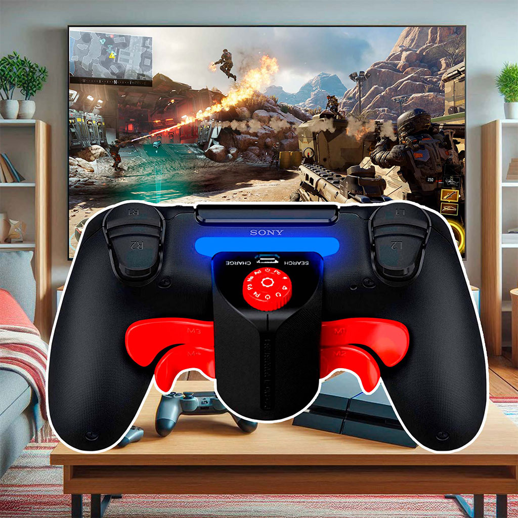 L’une des fonctions supplémentaires est le TURBO ; Avec cette fonction, vous pouvez transformer n’importe quelle arme semi-automatique en une arme entièrement automatique tout en maintenant la touche d’action enfoncée, ce qui la différencie de l’ accessoire Back Button Sony . Si vous n’êtes pas satisfait de vos paramètres, vous pouvez facilement les restaurer à l’aide de l’option Restaurer. La batterie a une capacité de 1000 mA avec une consommation de 100 mAh. La distance maximale autorisée du produit est de 8 mètres de la console.
