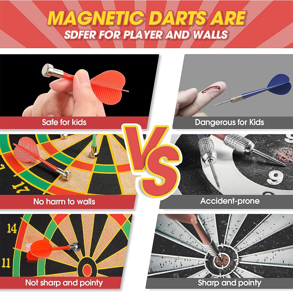 ✔[Jeu de fléchettes magnétique double face] Les jeux de fléchettes magnétiques enroulables sont des jeux d’intérieur et d’extérieur très appréciés des enfants et des adultes. Un jeu de fléchettes de 15″ équipé de 6 fléchettes, 3 vertes et 3 rouges. Plus facile à réaliser. côté est un jeu de fléchettes standard, et l’autre côté est un jeu cible qui offre plus de jeu et d’aventure. Plus de plaisir.✔[Facteur de sécurité plus élevé] Vous pouvez conserver les flèches magnétiques dans une boîte spéciale, et la tête de la flèche est constituée d’aimants plats, évitant que les flèches pointues ne blessent les personnes et votre mur, ce qui réduit considérablement le risque de blessure. Il convient à la fois aux enfants ou adulte.✔[Jouet aide à faire de l’exercice] Jeu de fléchettes magnétique de taille 15″ avec 6 fléchettes, 3 vertes et 3 rouges, facilite l’atteinte des cibles. Il peut exercer la force des bras, aider à développer la capacité de manipulation et coordonner les mouvements. Doit être un choix idéal car un cadeau pour vos enfants.✔[Éviter que les enfants soient accros aux appareils intelligents] Un jeu de fléchettes magnétique attrayant aide à éloigner les enfants du téléphone intelligent et de l’écran électronique, améliore leur coordination œil-main et leurs compétences en mathématiques de manière amusante. Simplement des règles de jeu, pas besoin de compétences ou de force spécifiques, tous les joueurs de niveau peuvent s’amuser dans notre jeu de fléchettes magnétique.✔[Meilleur cadeau pour les enfants] Une conception plus sûre en fait des jouets parfaits et fiables pour les enfants. Vous pouvez jouer avec votre enfant, améliorer les relations parent-enfant. En même temps, il convient aux bureaux, aux fêtes, aux familles, aux centres communautaires, aux sports et à la détente. , salles de jeux, espaces intérieurs et extérieurs et carnavals. Une bonne aventure et du plaisir doivent être le meilleur cadeau pour vos enfants.