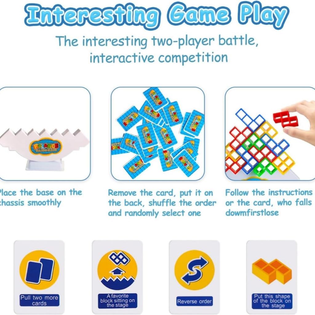 Plongez dans le défi avec le jeu Tetra Tower, un jeu d’équilibre et de stratégie passionnant pour 2 joueurs ou plus. Avec 32 pièces uniques, ce jeu de construction et d’empilage mettra à l’épreuve votre précision et votre réflexion rapide. Idéal pour les fêtes, les soirées en famille ou les voyages, il garantit des moments de fun et de compétition pour petits et grands.