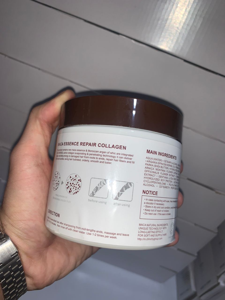 1. يحتوي على الكولاجين وزيت الأرجان والمكا والأعشاب الطبيعية لإصلاح الشعر الجاف والتالف بعمق.