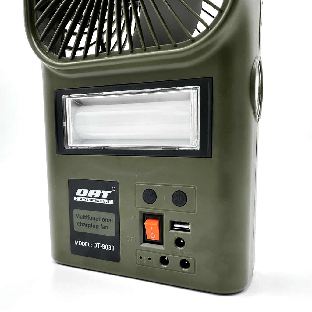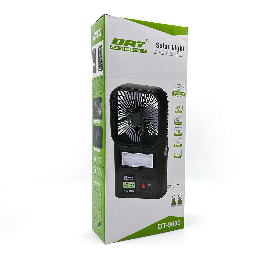 Le voyant rouge du chargeur clignote et, une fois la charge terminée, il reste allumé pendant une longue période. La charge complète dure environ 7 à 8 heures. Pour allumer l’appareil à LED, appuyez sur l’interrupteur : une fois pour un éclairage à distance, deux fois pour un éclairage d’urgence puissant, trois fois pour un éclairage d’urgence faible, quatre fois pour éteindre l’éclairage et alterner entre les cycles.Pour un ventilateur électrique, appuyez sur l’interrupteur : le premier bouton indique un vent fort, le deuxième un coup, le troisième un vent faible et le quatrième pour arrêter l’appareil.Pour charger un panneau solaire, il est conseillé de le placer sous un fort ensoleillement à 45 °C. Le voyant rouge s’allume alors, indiquant que le produit est en cours de charge.Pour charger via USB, insérez la fiche du cordon d’alimentation USB dans la base USB du produit, puis branchez l’autre extrémité sur l’appareil numérique à charger. L’utilisation de la sortie USB est déconseillée pendant le chargement.Pour utiliser une ampoule basse consommation, insérez le câble d’alimentation CC de l’ampoule basse consommation dans la sortie CC du produit, mettez-le sous tension, puis allumez l’ampoule.