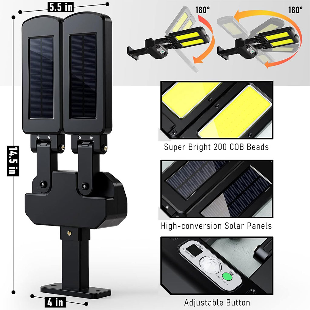 Lampadaires solaires d'extérieur 200 LED avec télécommande et détecteur de mouvement - مصباح بالطاقة الشمسية