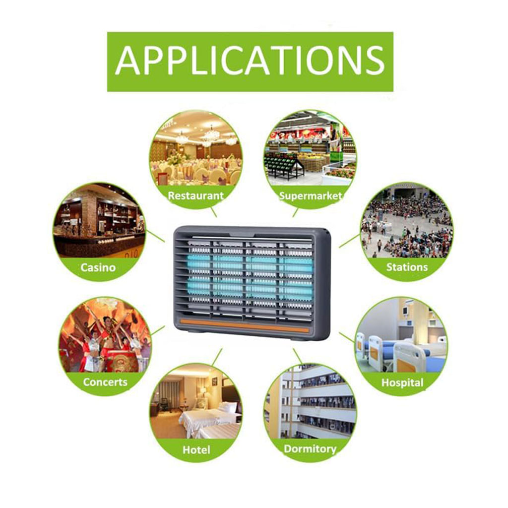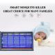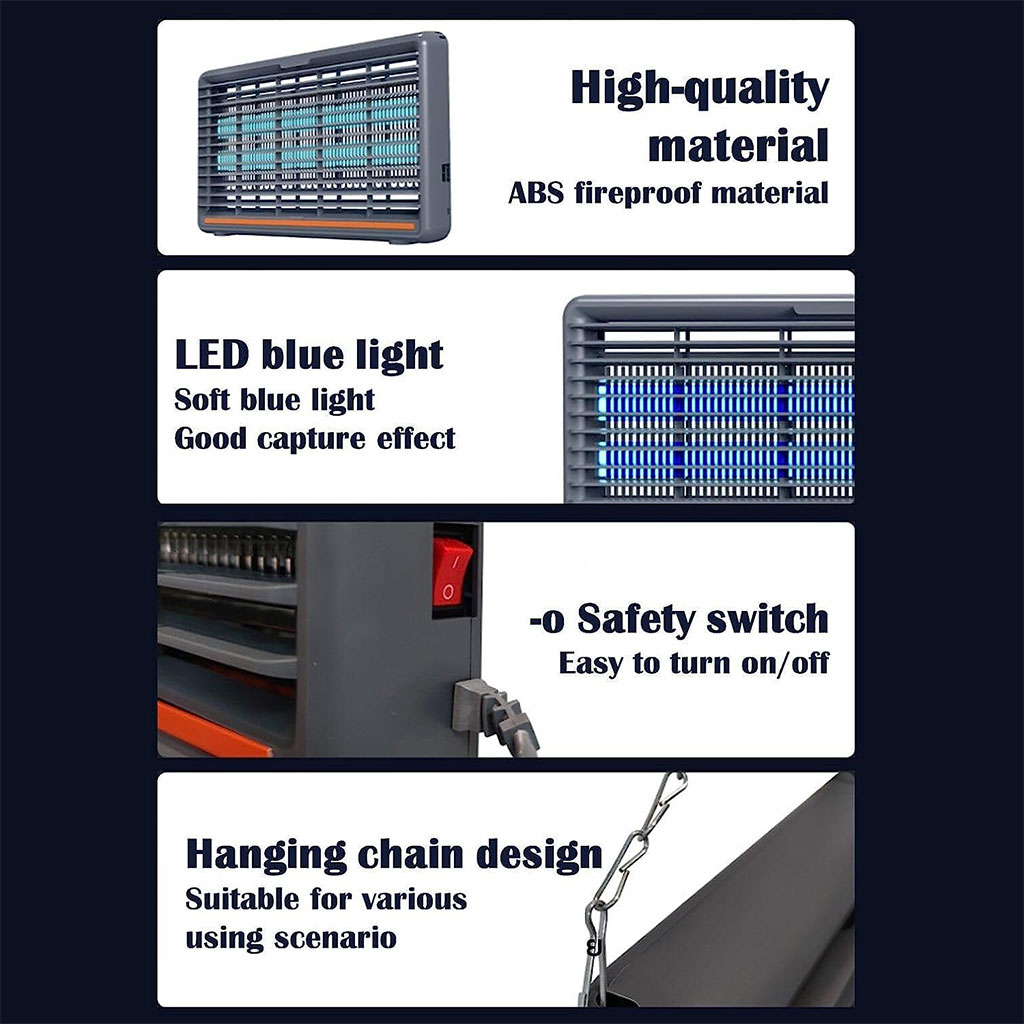 يخدم بتقنية جذب الحشرات الطائرة (الناموس، الذباب، النحل، العث، الذباب الصغير...) ويقضي عليهم بصاعق كهربائي قوي. بلا مواد كيميائية ولا روائح كريهة.