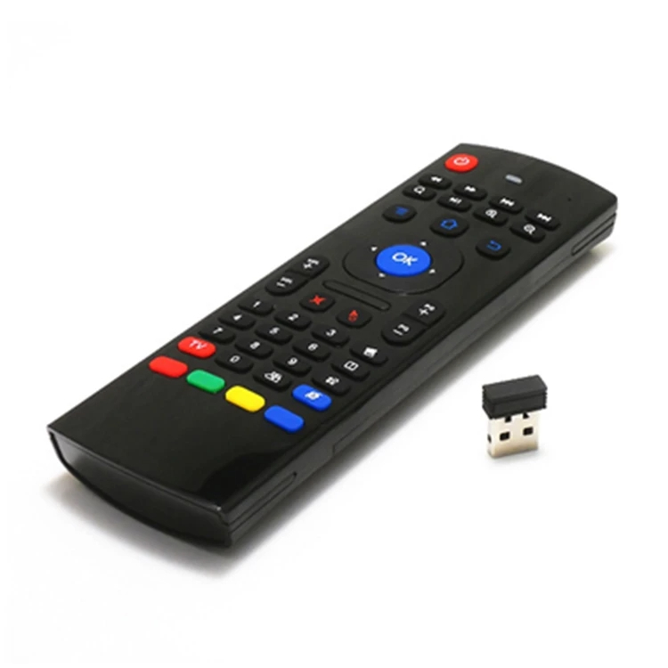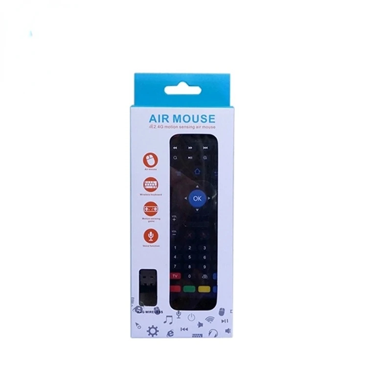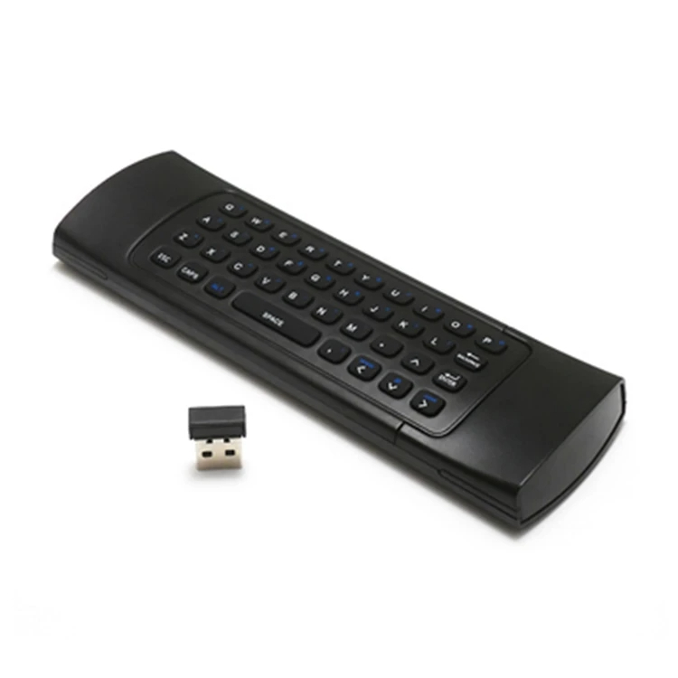 Souris volante 1.2.4G2. clavier3. Curseur de souris marche/arrêt4. Batterie: AAA X2 non incluse5. Contrôle IR + partie des touches pour l’apprentissage IR6.Distance de télécommande jusqu’à 15 mètres7. puissance de travail: moins de 10mA dans la condition de travailCapteurs à inertie 8.6 axes, supportant les jeux somatosensoriels9. Prend en charge les systèmes Android,Wins,Mac OS,Linux