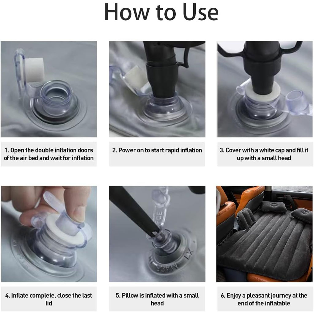 Matériau de haute qualité : le matelas de voiture est fabriqué dans un matériau de flocage en PVC souple de haute qualité, lavable, qui offre une excellente durabilité et un excellent confort. La surface ressemble à une plume douce, transformant la banquette arrière de votre voiture en un lit confortable et luxueux.S’adapte à la plupart des véhicules et occasions : le matelas de siège arrière de voiture s’adapte à la plupart des modèles de voitures, berlines, SUV, monospaces, à l’exception des Lincolns longues, camions et minibus. Convient pour les voyages longue distance, le camping, l’aventure, etc.Confort et sécurité : le design ergonomique ondulé soutient mieux votre dos, votre cou, vos jambes et votre corps. La conception de la butée de sécurité et de la protection de la tête protège votre enfant et vous-même des chutes sans vous soucier des virages ou des freinages brusques.Facile à gonfler/dégonfler : avec pompe électrique pour gonfler/dégonfler le matelas en quelques minutes. Lorsqu’il n’est pas utilisé, il peut être plié dans un sac de rangement, facile à transporter et ne prend pas de place .