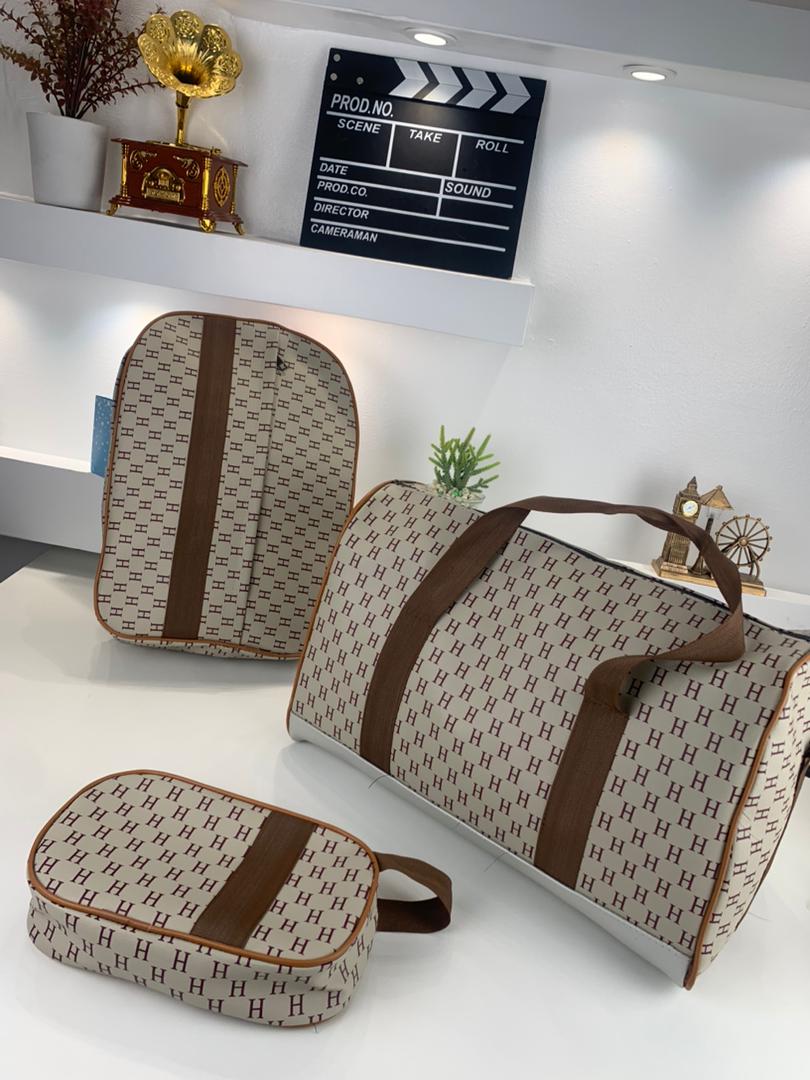 Pack 3Pcs Cabas Sac a Dos et Pochette en Tissue Imperméable Beige