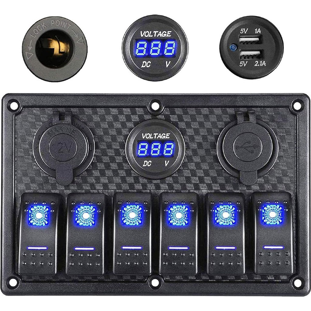 Découvrez le panneau de commande ultime pour vos aventures ! Avec notre panneau de commutation 12 V avancé pour camping-cars, bateaux et voitures, vous avez toujours le contrôle. Surveillez avec précision la tension avec l’écran intégré et choisissez parmi 6 commutateurs pour gérer sans effort tous vos appareils. L’allume-cigare et les fusibles pratiques offrent un confort et une sécurité supplémentaires sur la route. Et si cela ne suffisait pas, notre panneau dispose également d’un double chargeur rapide pour votre téléphone et votre tablette. Profitez au maximum de chaque trajet grâce à notre panneau de commande de haute qualité.