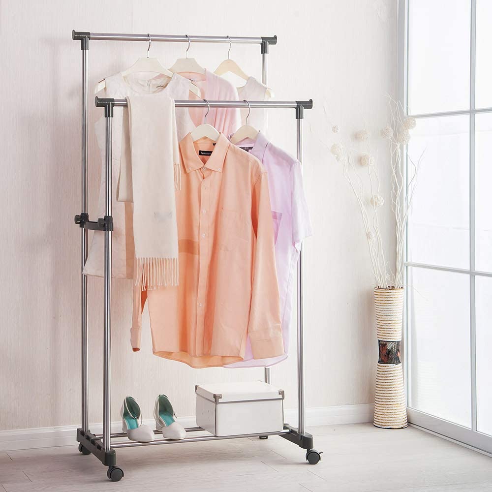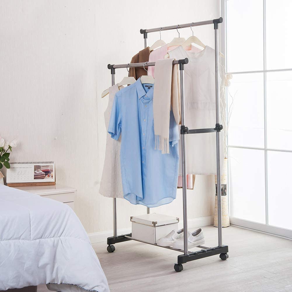 Vous souffrez d’encombrement dans votre chambre ? Le cintre avec le support d’organisation sera certainement une solution à votre problème, composé d’une structure en acier inoxydable robuste avec une grande capacité et une capacité de charge pour accrocher facilement vos différents vêtements et chaussures, en plus de roues qui facilitent le transport. à vous de le déplacer confortablement dans votre chambre.