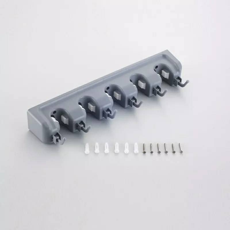 حامل المكانس يريحك من فوضى المكانس وأدوات التنضيف، يمسك العصى بقبضتين وتكون كل المكانس باتجاه واحد للأسفل بمنظر جد مرتب ومريح لا تشغل حيز ومساحة كبيرة على العكس توفر أكبر مساحة ممكنة..يمكن تثبيتها على الحائط أو على باب الخزانه.تحتوي على خمس فتحات تستوعب عدد كبير من الأغراض: كما يوجد بها 6 علاقات لمختلف الأدوات .. قدم طلبك فورا …