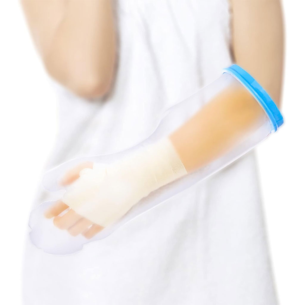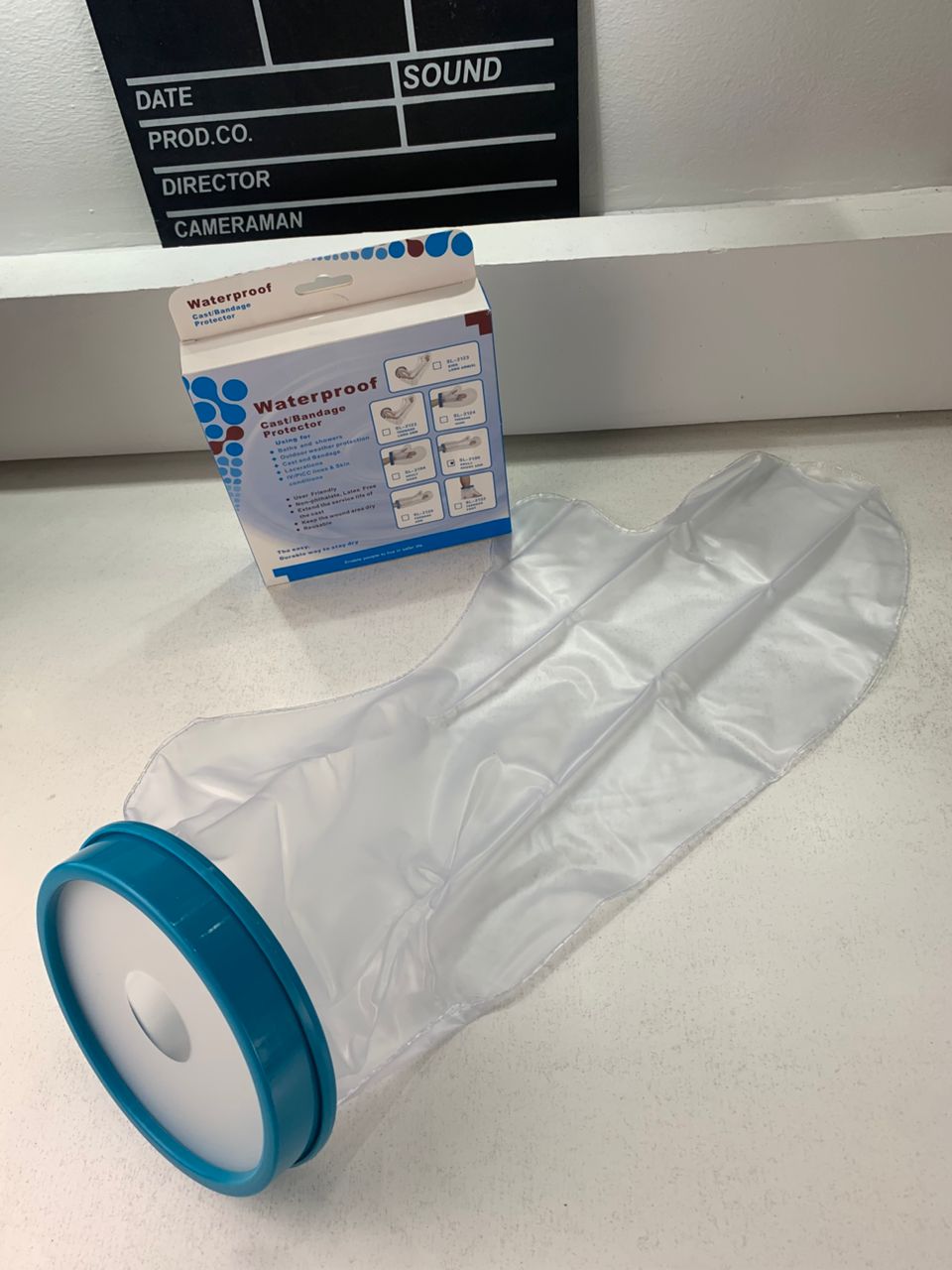 قبل الاستحمام، يُفضل أن يساعدك أحد أفراد العائلة في فتح الحلقة المرنة الخاصة بالغطاء المقاوم للماء، ثم إدخال الطرف المصاب ببطء داخل الغطاء لتفادي ملامسة المنطقة المصابة.