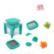 La conception spéciale en forme de carré offre une prise ferme et réduit considérablement les accidents.plusieurs lames qui s’adaptent à de nombreux styles de coupe.Passe au lave-vaisselle et facile à nettoyer.Les fruits et légumes sont finement hachés.un bac de vidange au bas du broyeur.