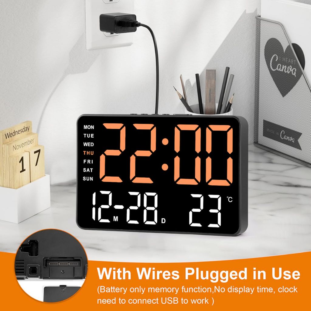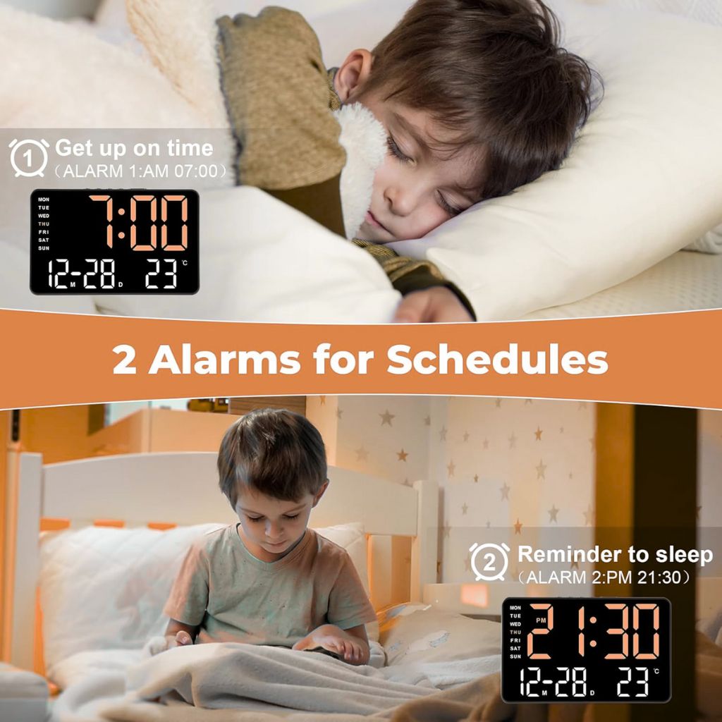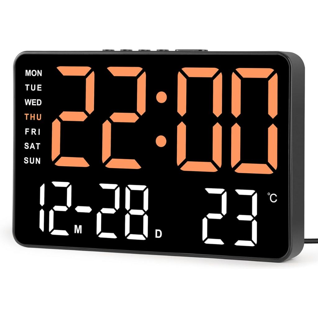 Grand Écran LED de 7,2 Pouces : Affichage clair de l'heure, de la date et de la température, facilitant la lecture même à distance.Double Alarme avec Fonction Snooze : Permet de programmer deux alarmes distinctes, avec une option de répétition pour quelques minutes de sommeil supplémentaires.Luminosité Réglable sur 5 Niveaux : Ajustez la luminosité de l'écran selon vos préférences pour un confort visuel optimal, de jour comme de nuit.Affichage du Jour et de la Date : Fonction calendrier intégrée affichant le jour de la semaine et la date, pour une meilleure organisation quotidienne.Design Moderne et Polyvalent : Idéal pour la chambre à coucher, le salon ou le bureau, ajoutant une touche élégante à votre intérieur.