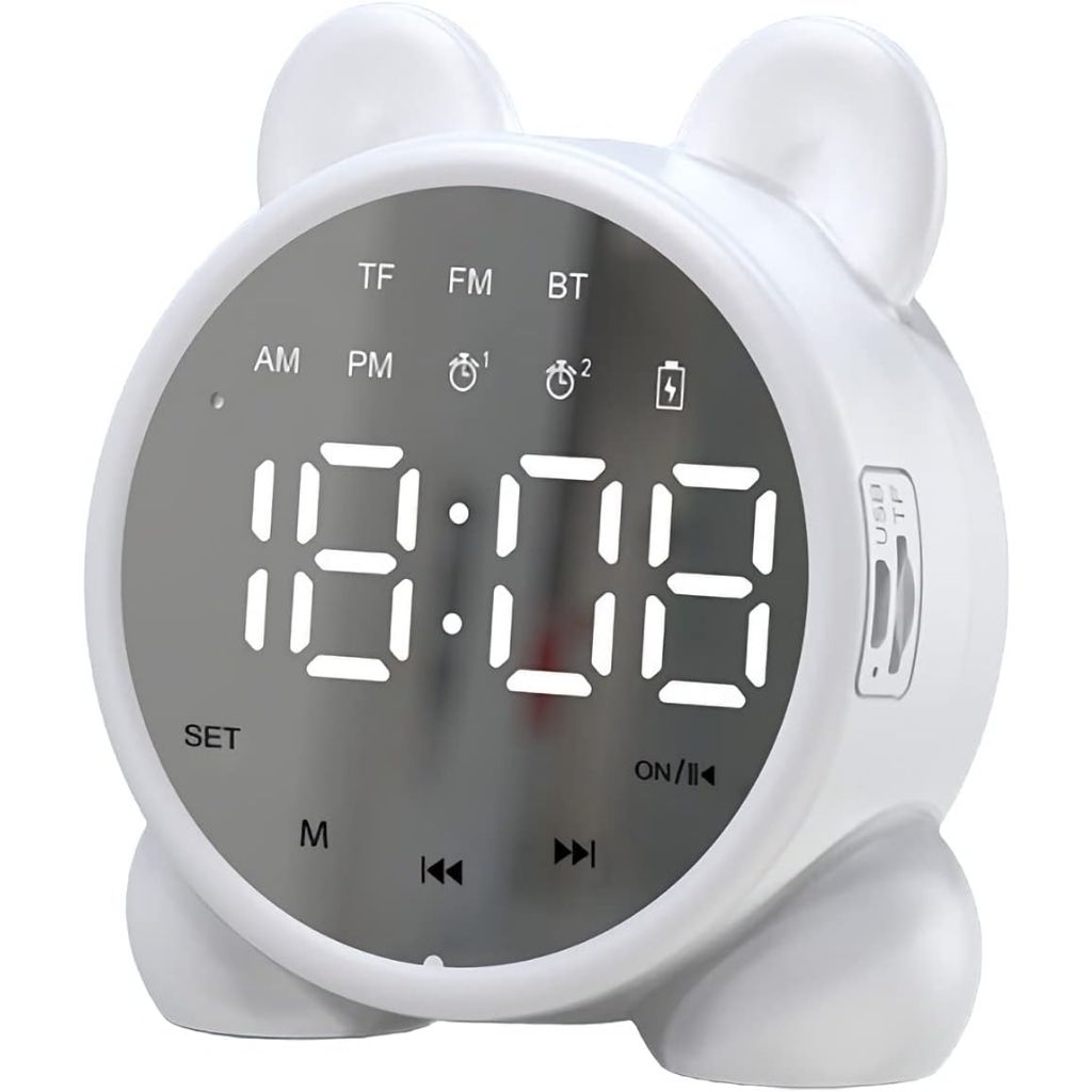 Affichage LED Miroir : Un écran clair et lumineux qui sert également de miroir pratique.Haut-Parleur Bluetooth Intégré : Profitez de votre musique préférée avec une qualité sonore exceptionnelle.Radio FM : Restez informé des actualités et écoutez vos stations de radio favorites.Double Alarme : Programmez deux alarmes distinctes pour une gestion optimale de votre temps.Portabilité : Design compact et léger, facile à transporter où que vous alliez.