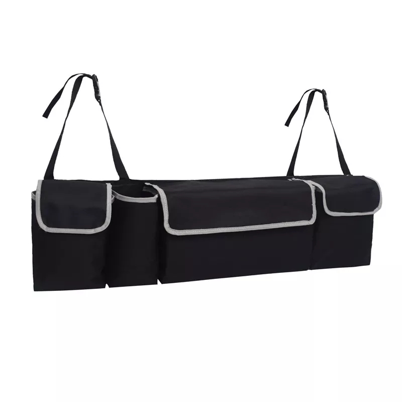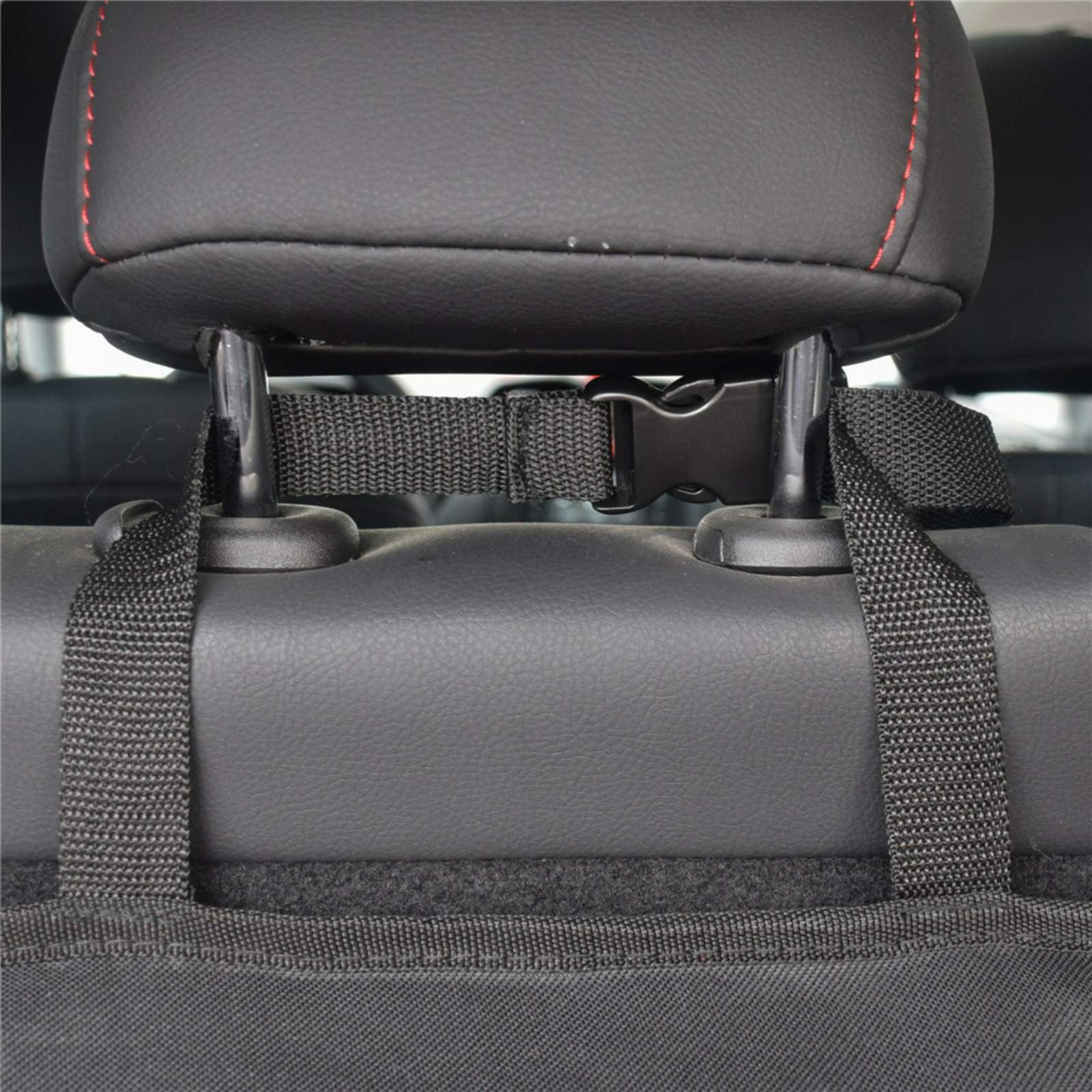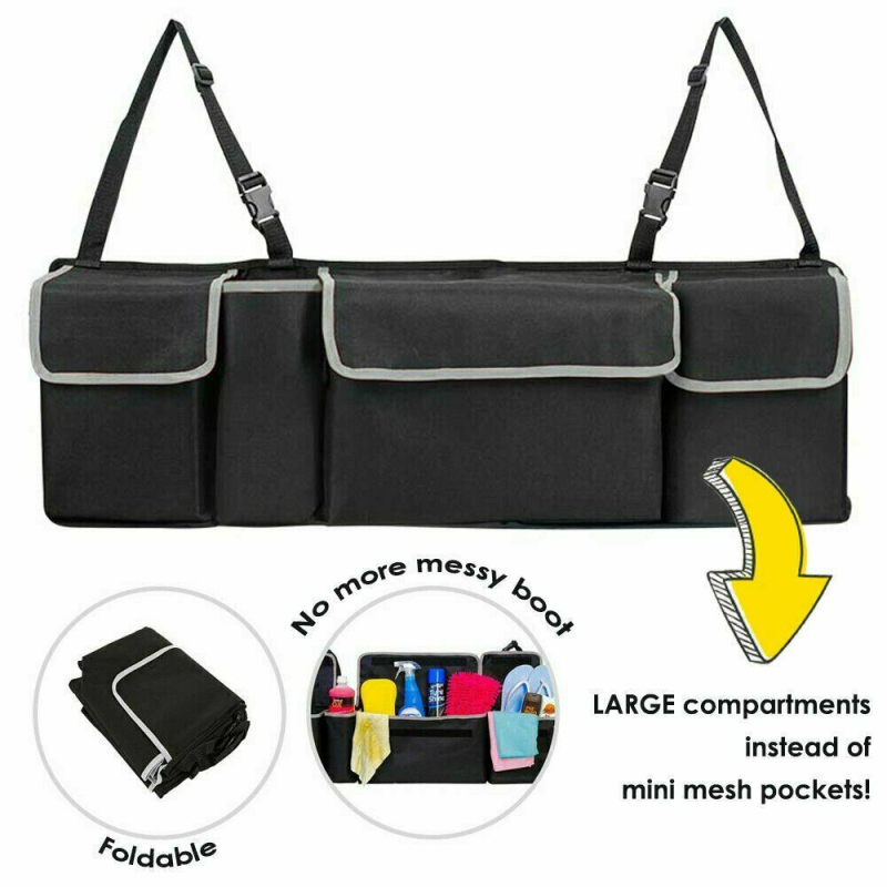 Fonctionnalité 2 en 1-peut facilement être utilisé comme organisateur de voiture de banquette arrière ou comme organisateur de coffre de voiture!Il y a 4 poches spacieuses et le couvercle avec des attaches. Vous pouvez mettre vos choses préférées dans votre poche.Sangles d’appui-tête entièrement réglables-adaptées à tous les véhicules.Dos solide et poche centrale avant-maintient la rigidité même en cas de charge.Multi-usages-rangement de voiture pour les jouets pour enfants, les pièces de rechange de véhicules, les collations, les jouets pour animaux de compagnie, les fournitures pour bébés, le matériel de cyclisme, l’équipement de football et même un organisateur de coffre de golf.Compagnon éprouvé pour tout camping ou voyage de pêche réussi. Gardez les chevilles, le matériel de pêche et les guimauves en toute sécurité suspendus au-dessus de votre coffre.Taille du produit: 90cm x 25cm x 12cm/Matériel: tissu imperméable d’oxford du cryptage 600DCouleur: noir
