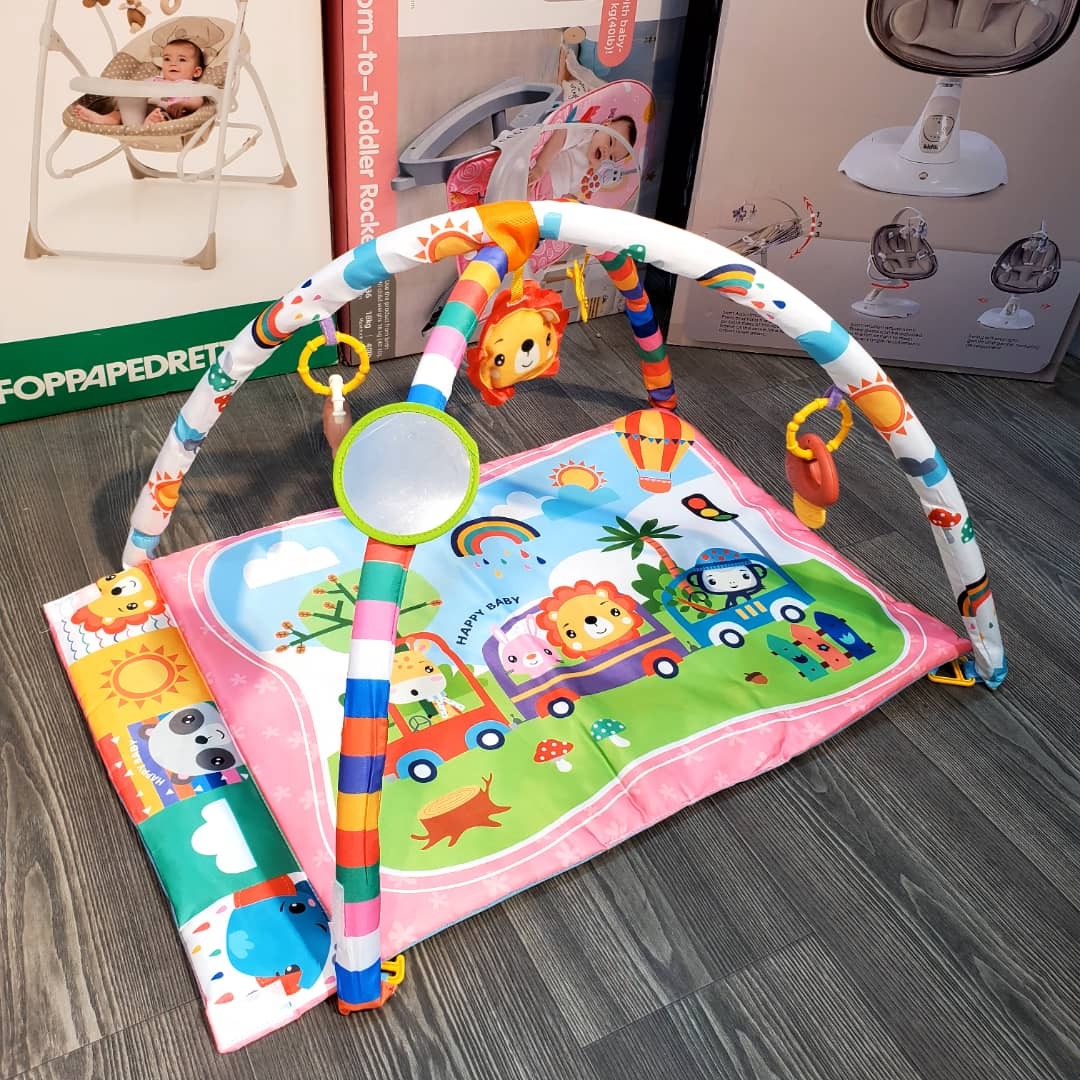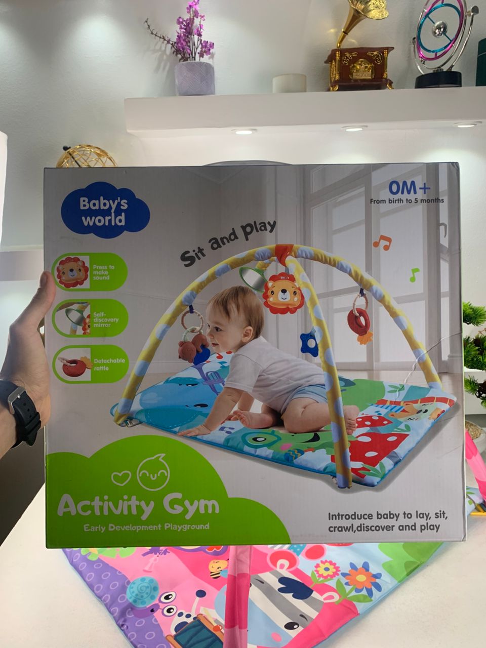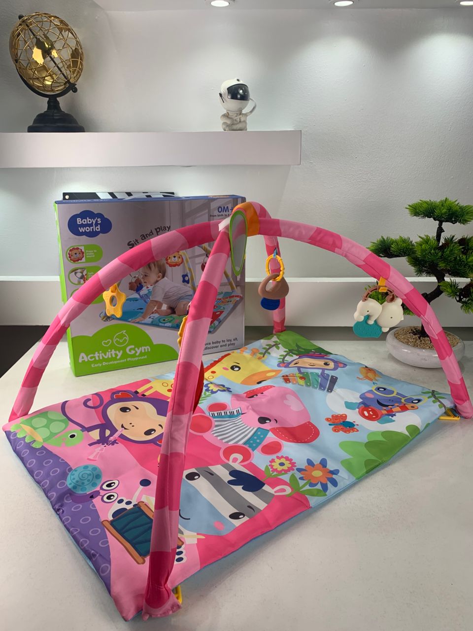 🎠 قوس مع 4 ألعاب معلقة :ぺلّوش، نجمة، حلقات وعناصر بملمس مختلف لتنمية الفضول.🐻 سجادة ناعمة مبطنة برسومات حيوانات مرحة لتحفيز البصر والخيال.🖐️ يساعد على تنسيق العين مع اليد وتقوية العضلات من خلال أنشطة الأرض.🤹♂️ مناسب للعب على الظهر، على البطن أو في وضعية الجلوس.👜 سهل الطي والحمل للاستعمال في المنزل أو أثناء التنقل.📏 الأبعاد : 70×50×45 سم