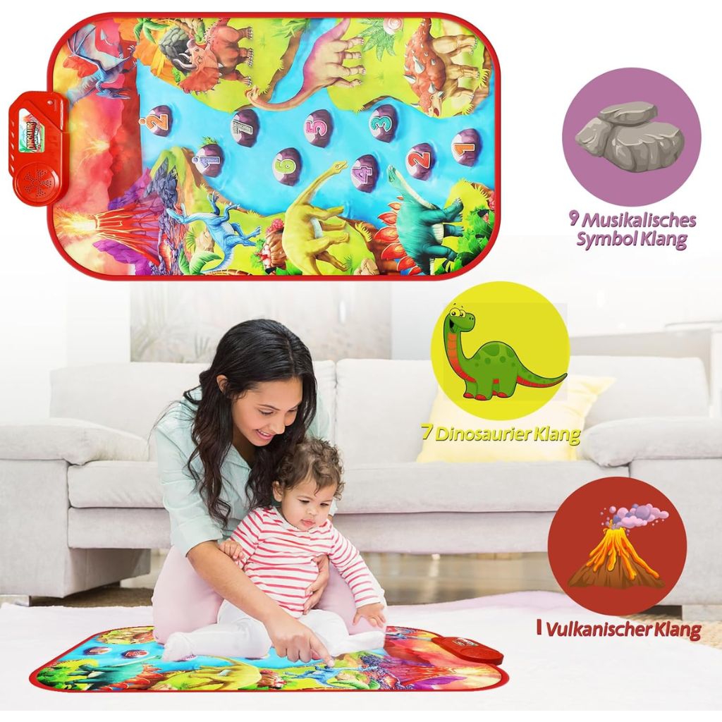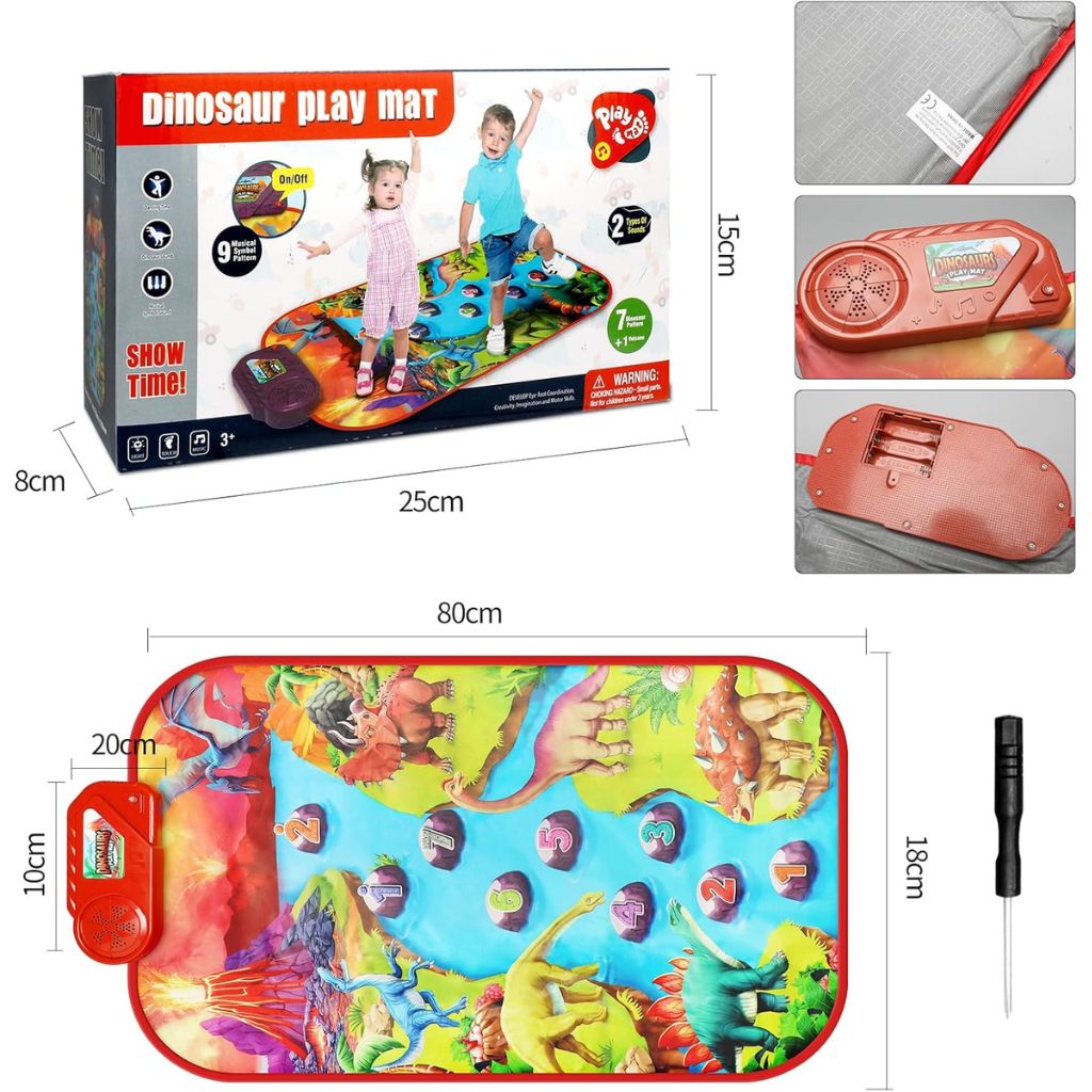 Éveil Musical – التنمية الموسيقية : Ce tapis interactif permet aux enfants de découvrir la musique en appuyant sur les touches du piano, favorisant ainsi le développement de leur sens rythmique et de leur coordination.Design Attrayant – تصميم جذاب : Orné de motifs de dinosaures colorés, il capte l'attention des tout-petits et rend l'apprentissage amusant et engageant.Matériaux de Qualité – مواد عالية الجودة : Fabriqué en tissu doux et durable, le tapis est confortable pour les petites mains et pieds, tout en étant résistant à l'usure quotidienne.Facile à Ranger – سهل التخزين : Léger et pliable, il se range aisément après utilisation, idéal pour les espaces restreints ou pour l'emporter lors de déplacements.Sécurité Enfant – أمان للأطفال : Conçu sans bords tranchants et avec des matériaux non toxiques, il assure une utilisation sécurisée pour les enfants.