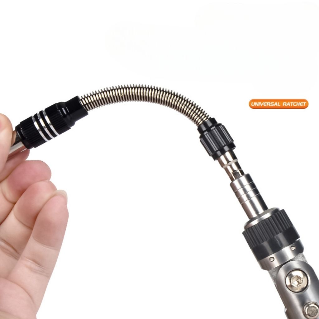 Matériau Haute Résistance : Fabriqué en acier de haute qualité, garantissant une durabilité exceptionnelle pour les travaux intensifs.Mécanisme à Cliquet : Permet un vissage et un dévissage rapides et sans effort, avec un système de rotation fluide.Multifonctionnel : Livré avec plusieurs embouts interchangeables, adapté pour les réparations automobiles, les tâches de bricolage et le démontage d'équipements.Design Ergonomique : Poignée antidérapante conçue pour une prise en main confortable, réduisant la fatigue pendant les longues sessions de travail.Utilisation Professionnelle et Domestique : Parfait pour les mécaniciens professionnels comme pour les bricoleurs amateurs.