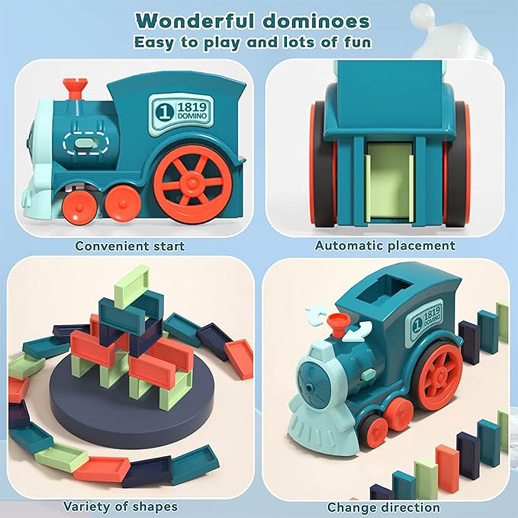 Jouets dominos intéressants : 1 petit train, 80 dominos, 1 ornement de direction et 1 boîte de rangement, les dominos auront un choix différent à chaque fois, vous pouvez augmenter la difficulté en conséquence et améliorer la capacité d’innovation et la pensée logique des enfantsMatériau de haute qualité : fabriqué en plastique ABS sélectionné de haute qualité, sans bords ni coins, ne blessera pas les mains des enfants, les parents peuvent jouer avec leurs enfants et favoriser la communication émotionnelle entre parents et enfants.Éclairage coloré et effets sonores : une fois l’interrupteur à tirette allumé, les lumières et les effets sonores s’allument en même temps, ce qui imite le bruit d’un train à vapeur, évoque des sensations visuelles et auditives et favorise les capacités cognitives des enfants.【Fonction de placement automatique】 : les petits trains sont automatiquement placés uniformément et la distance entre chaque domino est de 1,5 cm. Tournez la cheminée pour définir la direction et changer de voie. Une légère pression sur les dominos provoque une réaction en chaîne et tombe successivement.Cadeau parfait : c’est un jouet amusant qui peut être utilisé comme cadeau de Noël, cadeau d’Halloween, surprise d’anniversaire et puzzle pour donner à votre enfant un moment de jeu heureux.