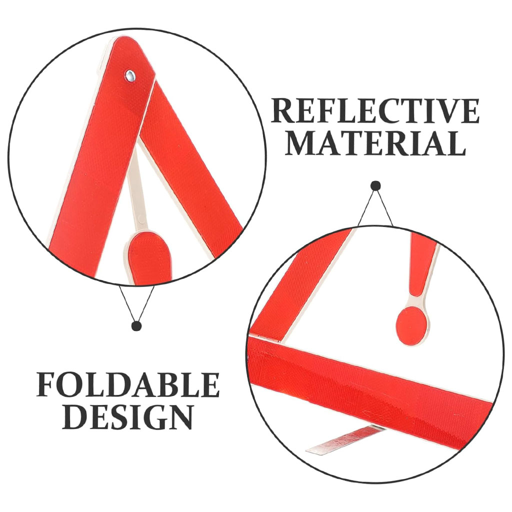 Réflecteurs d’allée : grâce à son utilisation multifonctionnelle, il peut servir de panneau d’avertissement lorsque vous devez vous arrêter ou faire face à des urgences pendant la conduite.Triangle d’urgence : sa construction durable garantit une utilisation durable, pas facile à endommager.Kit d’avertissement triangulaire : le support offre une excellente stabilité, garantissant que le panneau d’avertissement reste en place dans des conditions extérieures.Panneau d’avertissement routier : il est stable, facile à disposer, parfait pour une utilisation en extérieur, empêchant tout basculement facile.Kit réfléchissant pour route de voiture : le matériau réfléchissant et la couleur très vive du panneau triangle d’urgence améliorent la sécurité routière.