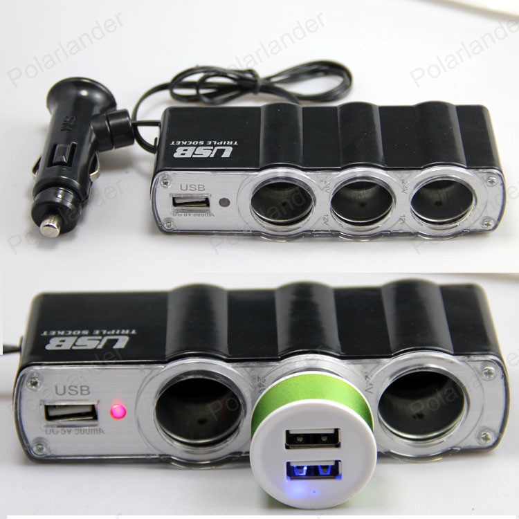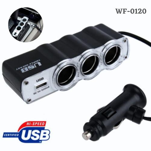 شاحن ولاعة سيارة WF-0096 بثلاث منافذ مع منفذ USB