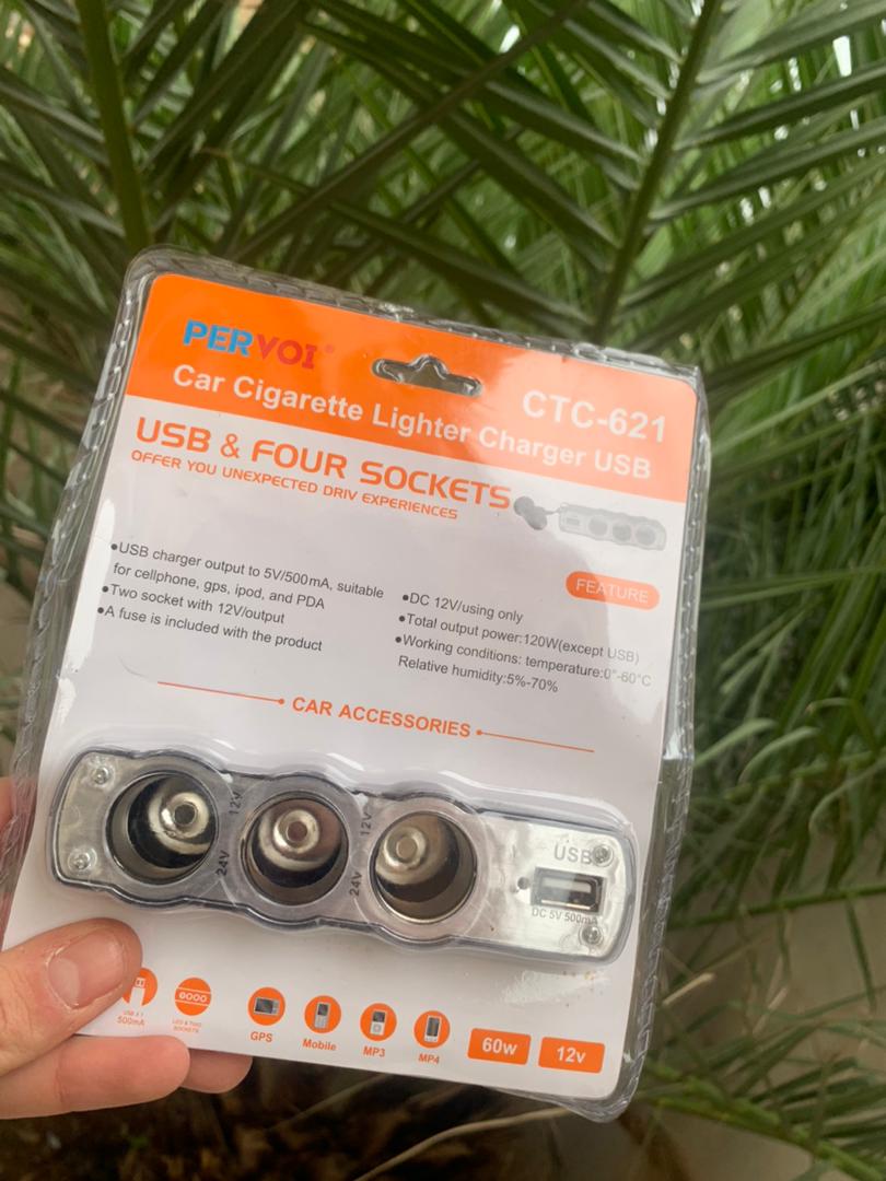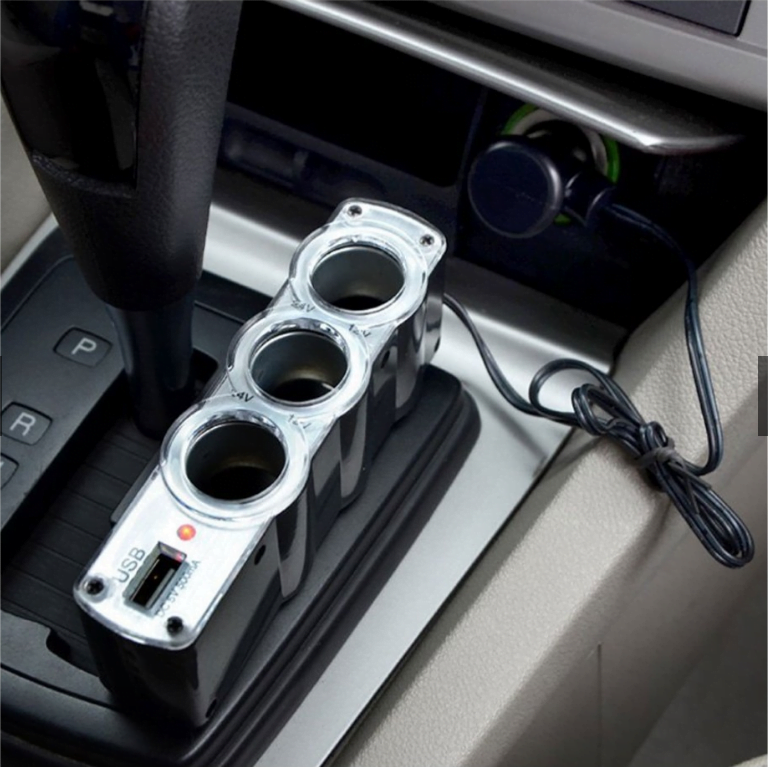 المرفقات: محول 12 فولت بثلاثة منافذ لشحن الأجهزة في السيارة.