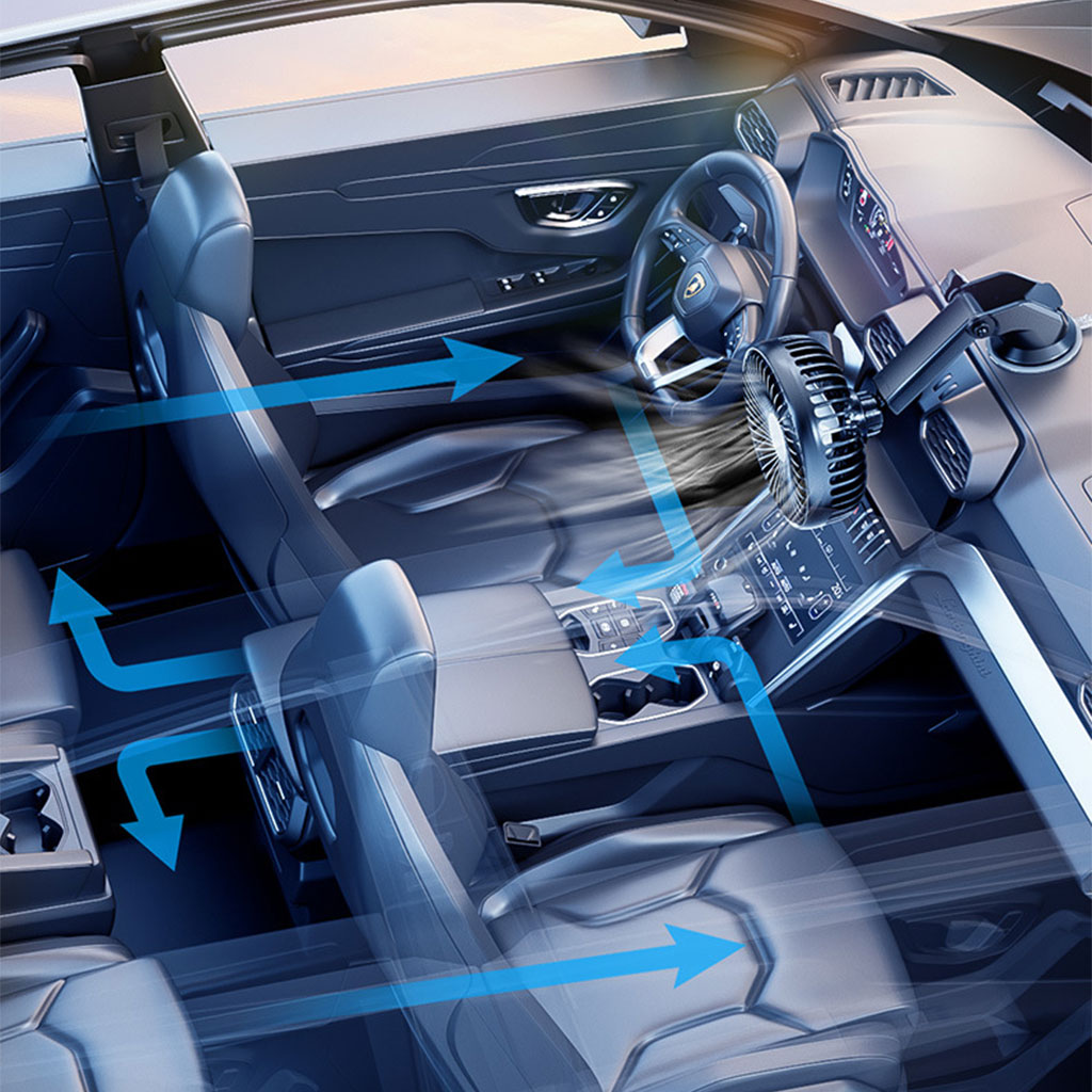 Gardez votre voiture fraîche et confortable grâce à ce ventilateur compact, puissant et élégant. Facile à installer, il se fixe solidement sur le pare-brise ou le tableau de bord à l’aide d’une ventouse robuste.