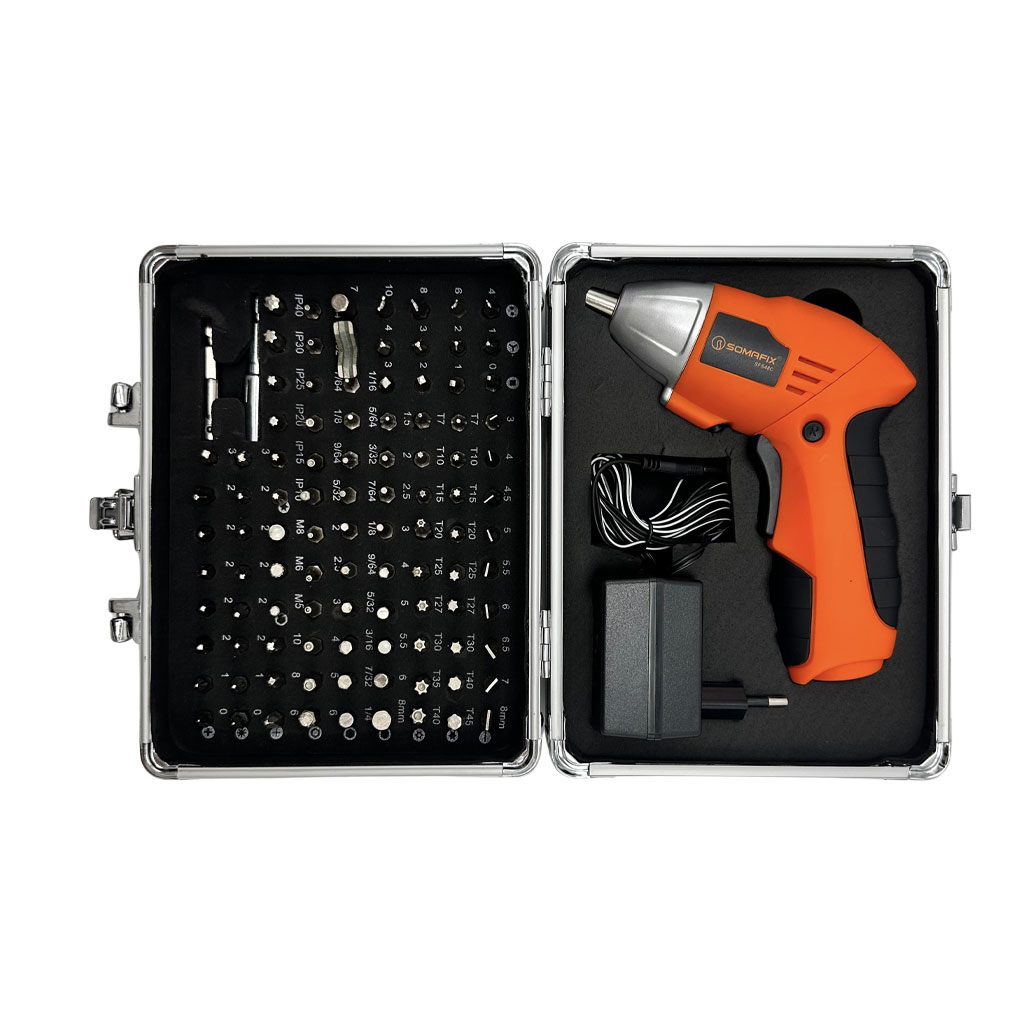 الأداة المثالية لأعمال الدقة سواء في المنزل أو في الورشة. يأتي في حقيبة منظمة تضم مجموعة واسعة من الرؤوس لتناسب جميع أنواع البراغي والمواد.